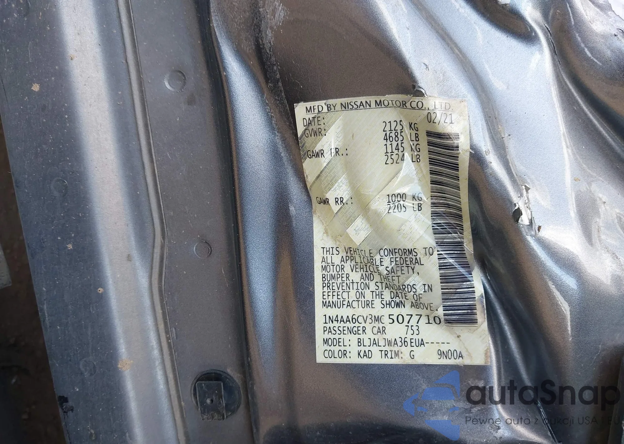 • VIN: 1N4AA6CV3MC507710