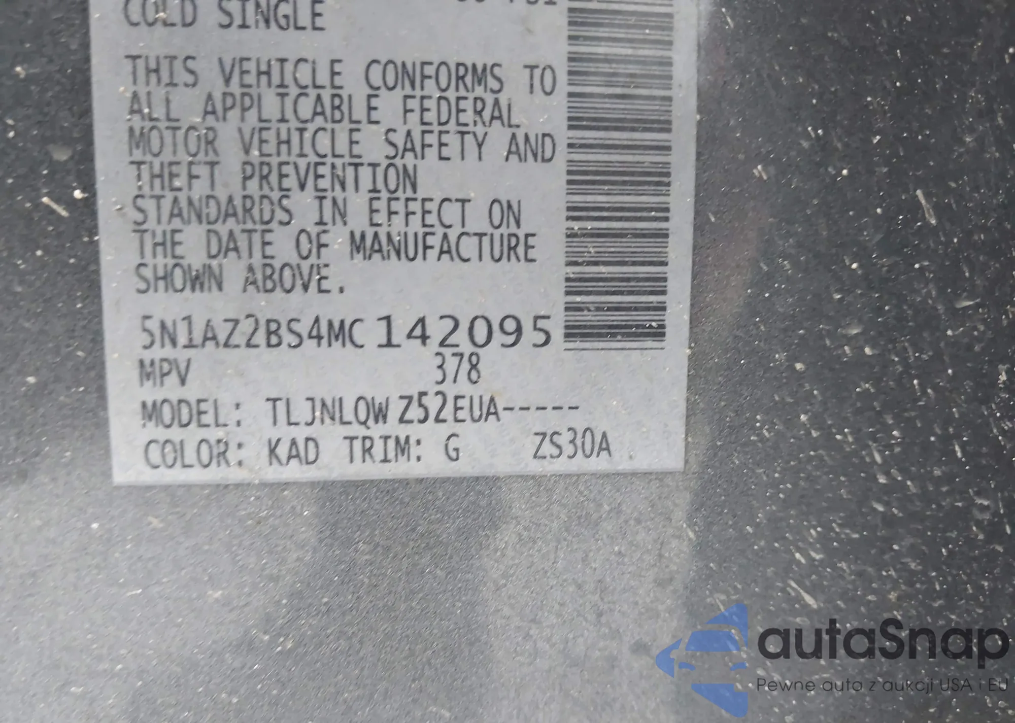 VIN: 5N1AZ2BS4MC142095