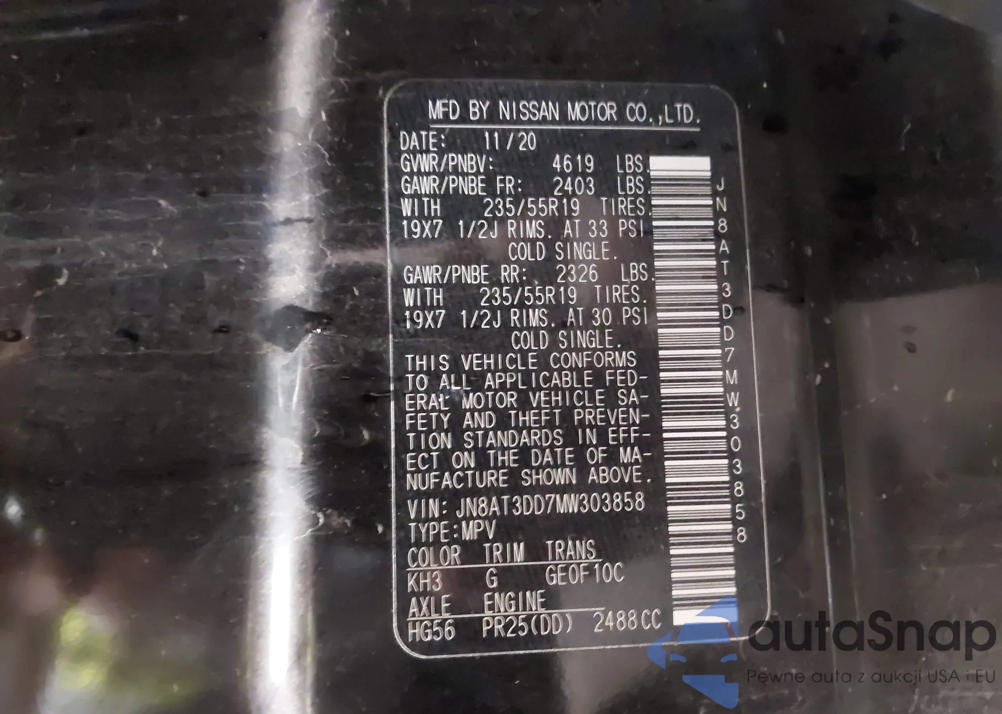 VIN: JN8AT3DD7MW303858
