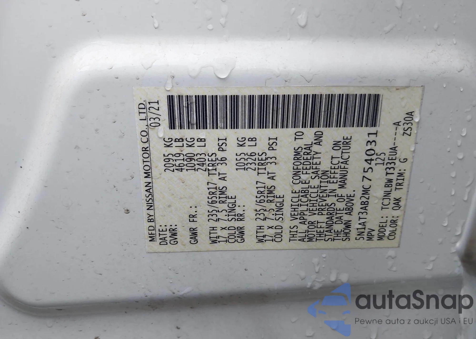 • VIN: 5N1AT3AB2MC754031