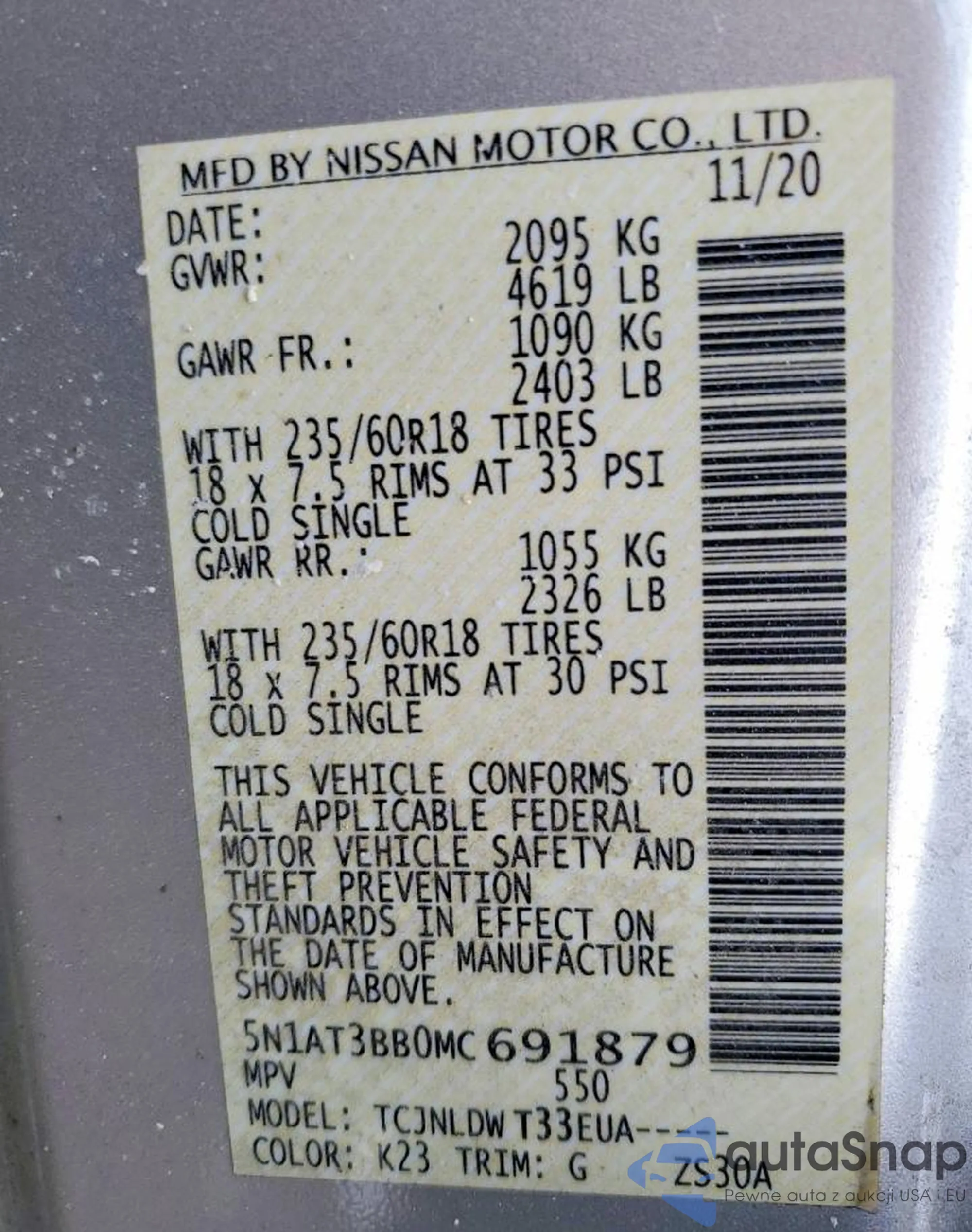 • VIN: 5N1AT3BB0MC691879