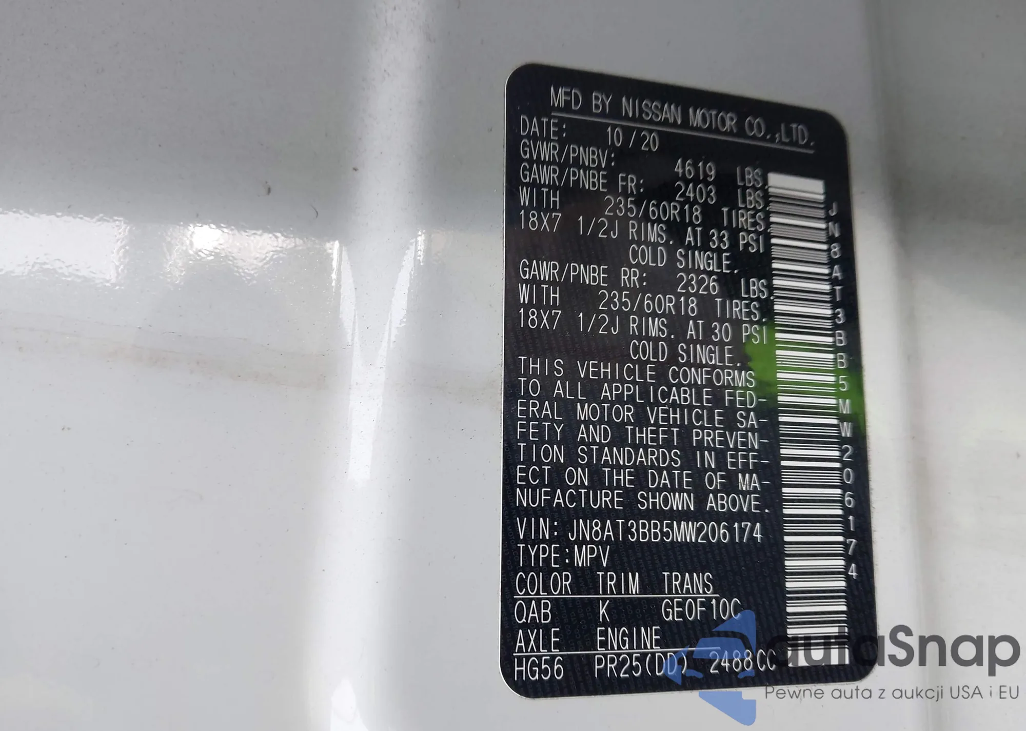 VIN: JN8AT3BB5MW206174
