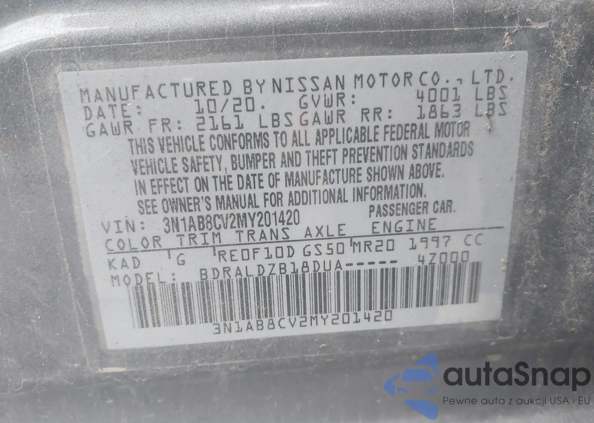 VIN: 3N1AB8CV2MY201420