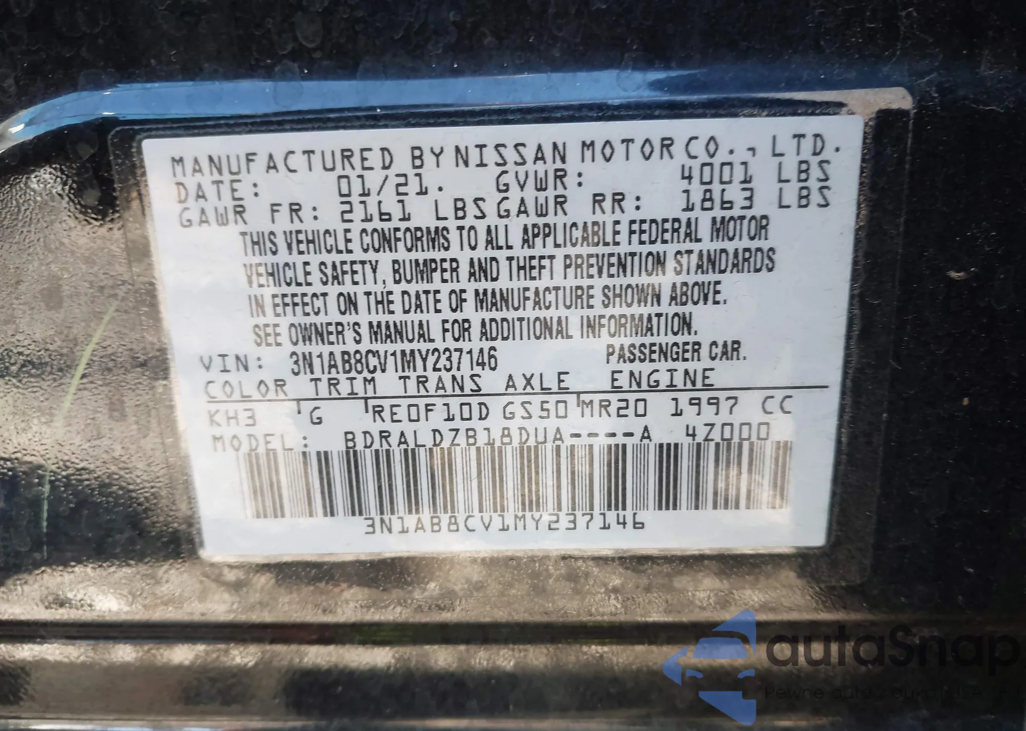 • VIN: 3N1AB8CV1MY237146