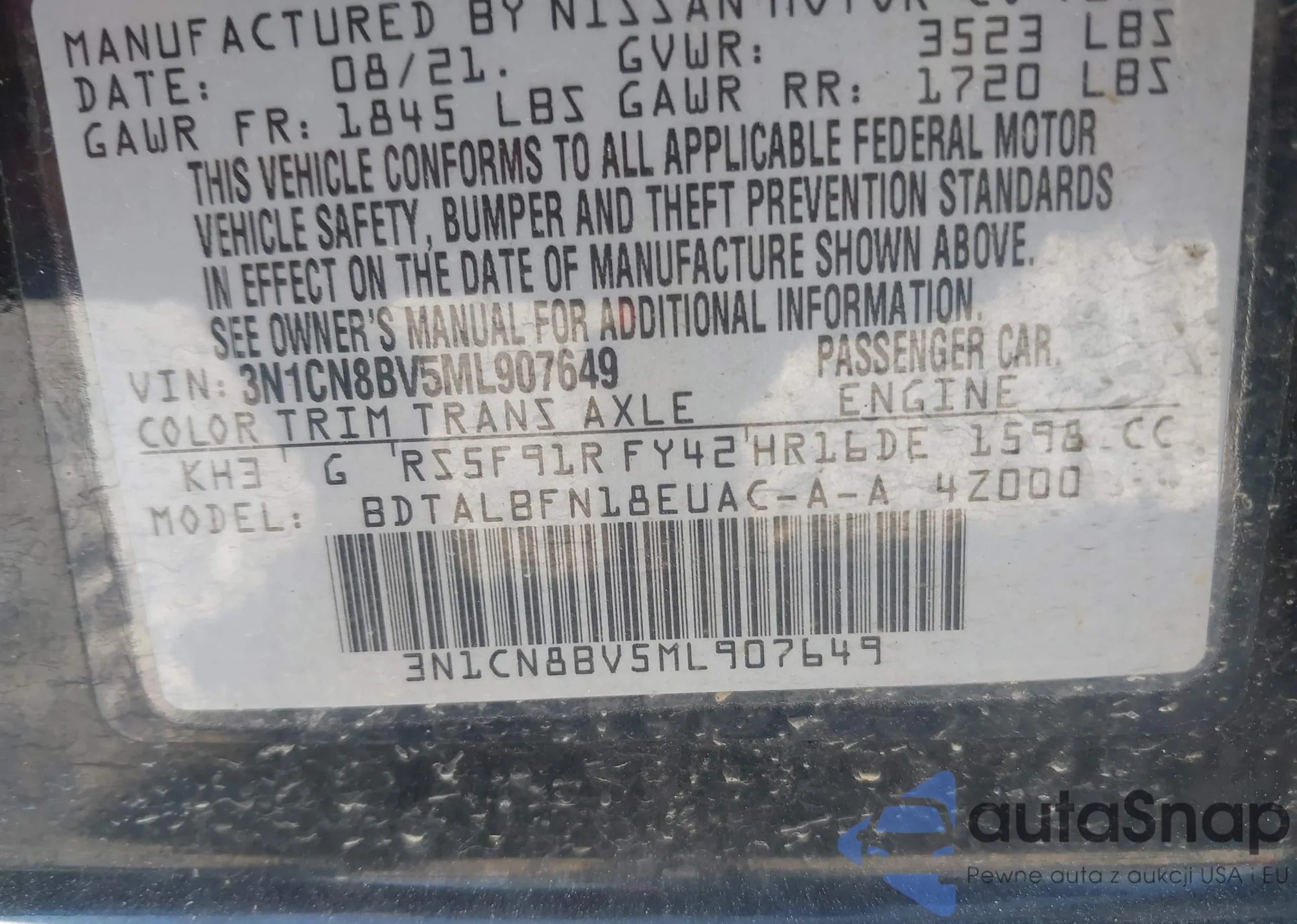 VIN: 3N1CN8BV5ML907649