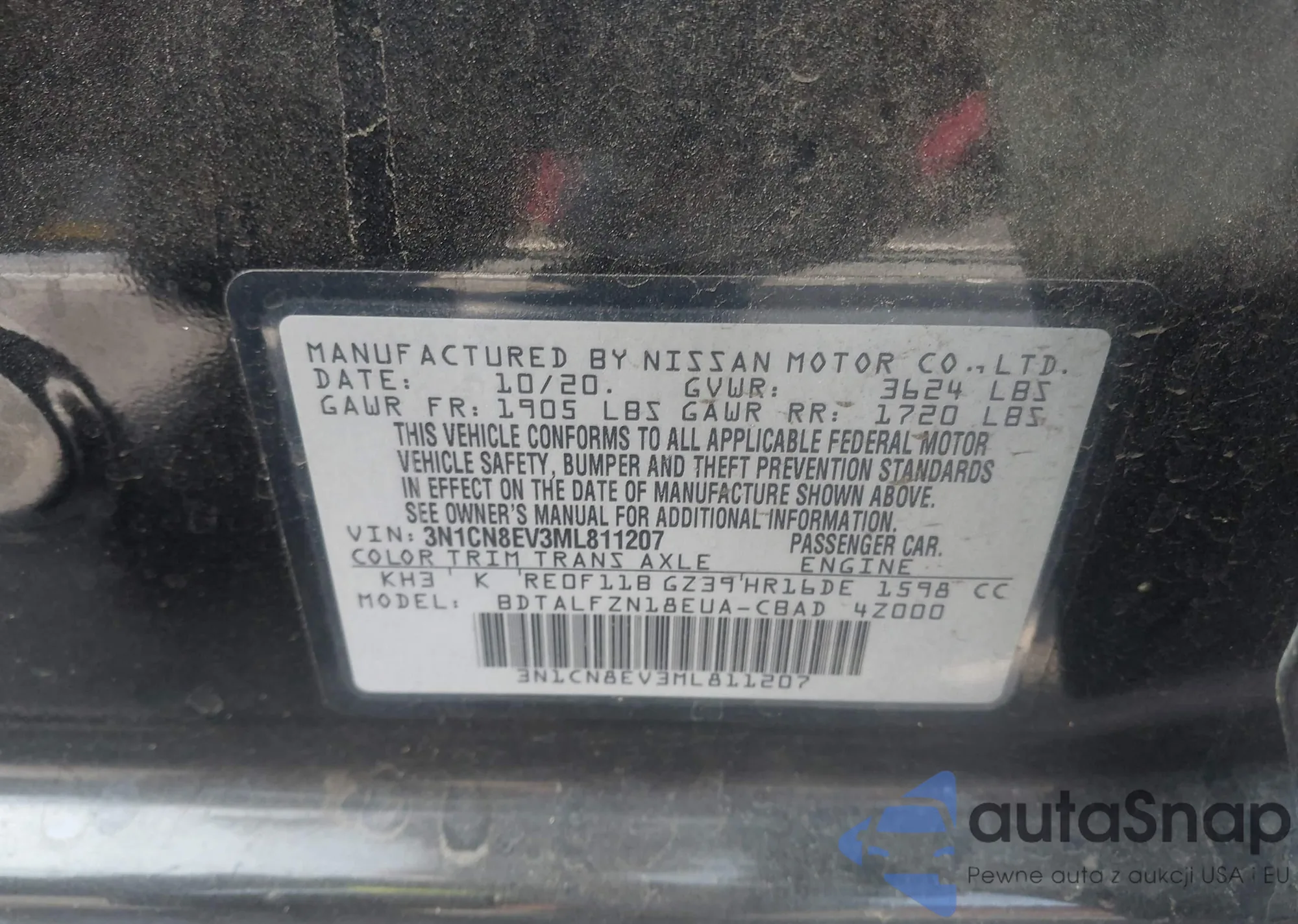 VIN: 3N1CN8EV3ML811207
