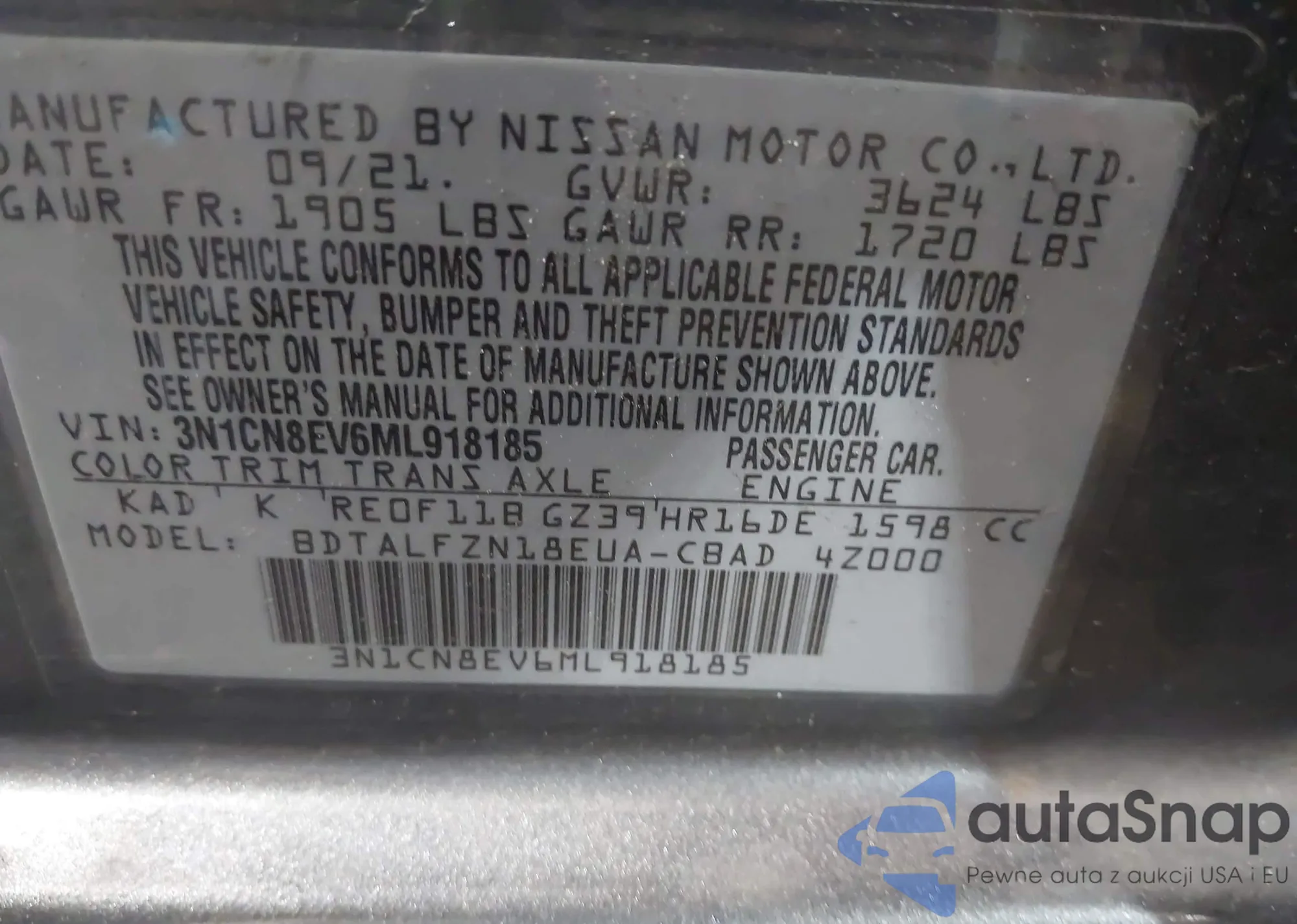 VIN: 3N1CN8EV6ML918185