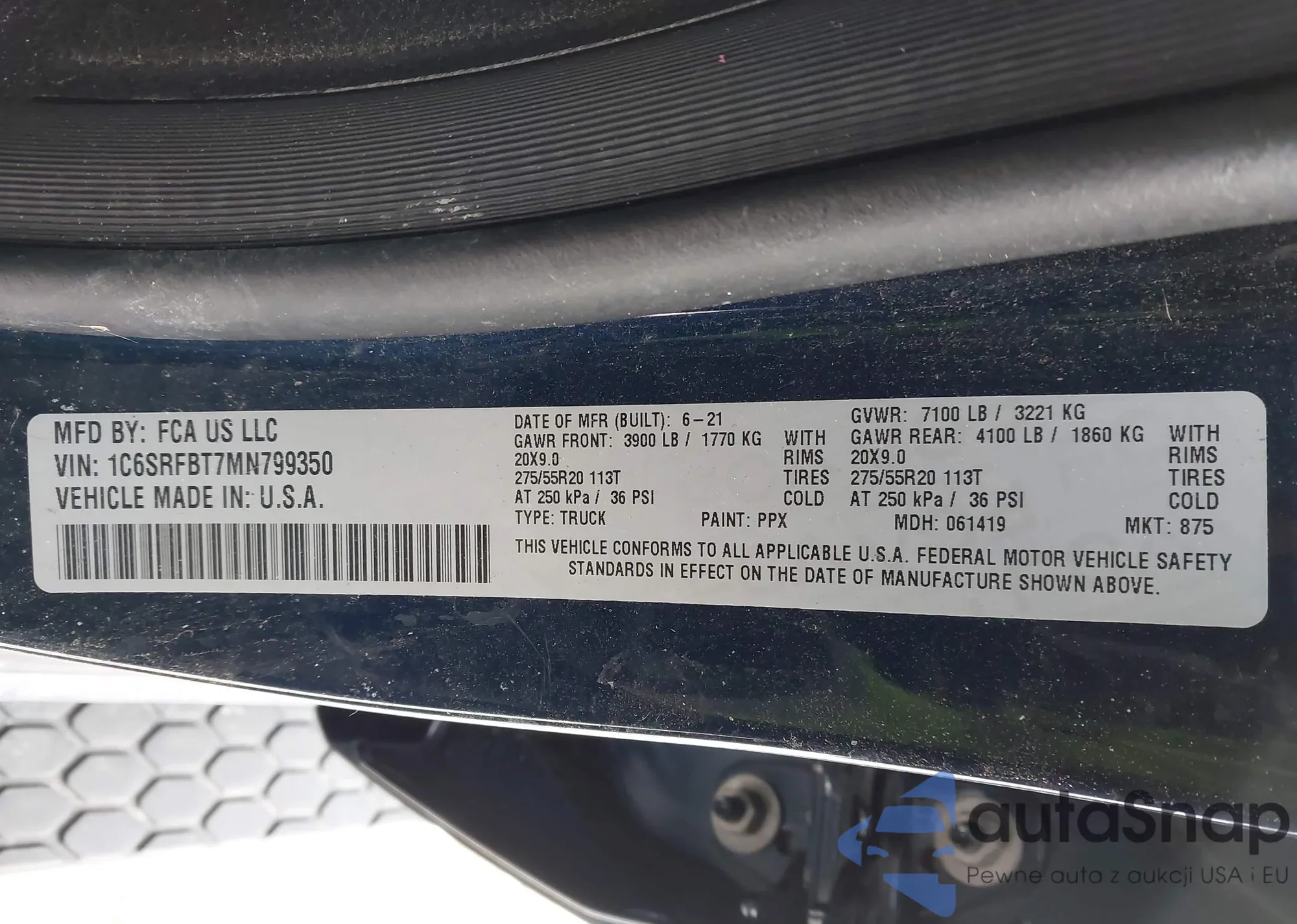 Samochód RAM 1500 2021 (VIN 1C6SRFBT7MN799350) nie był wcześniej licytowany. Dokumenty są czyste, przebieg odpowiada lub jest niższy niż średnia rynku. Sprzedaje go firma ubezpieczeniowa – polecamy zakup. Dostawa do portu zajmie ok. 6–8 tygodni.