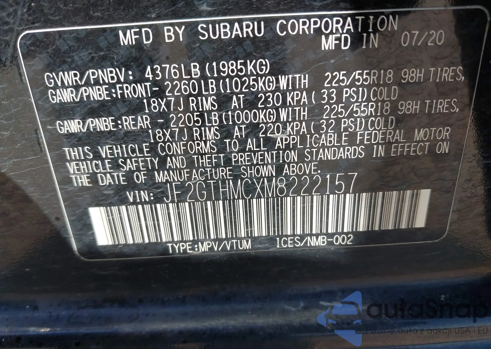 VIN: JF2GTHMCXM8222157