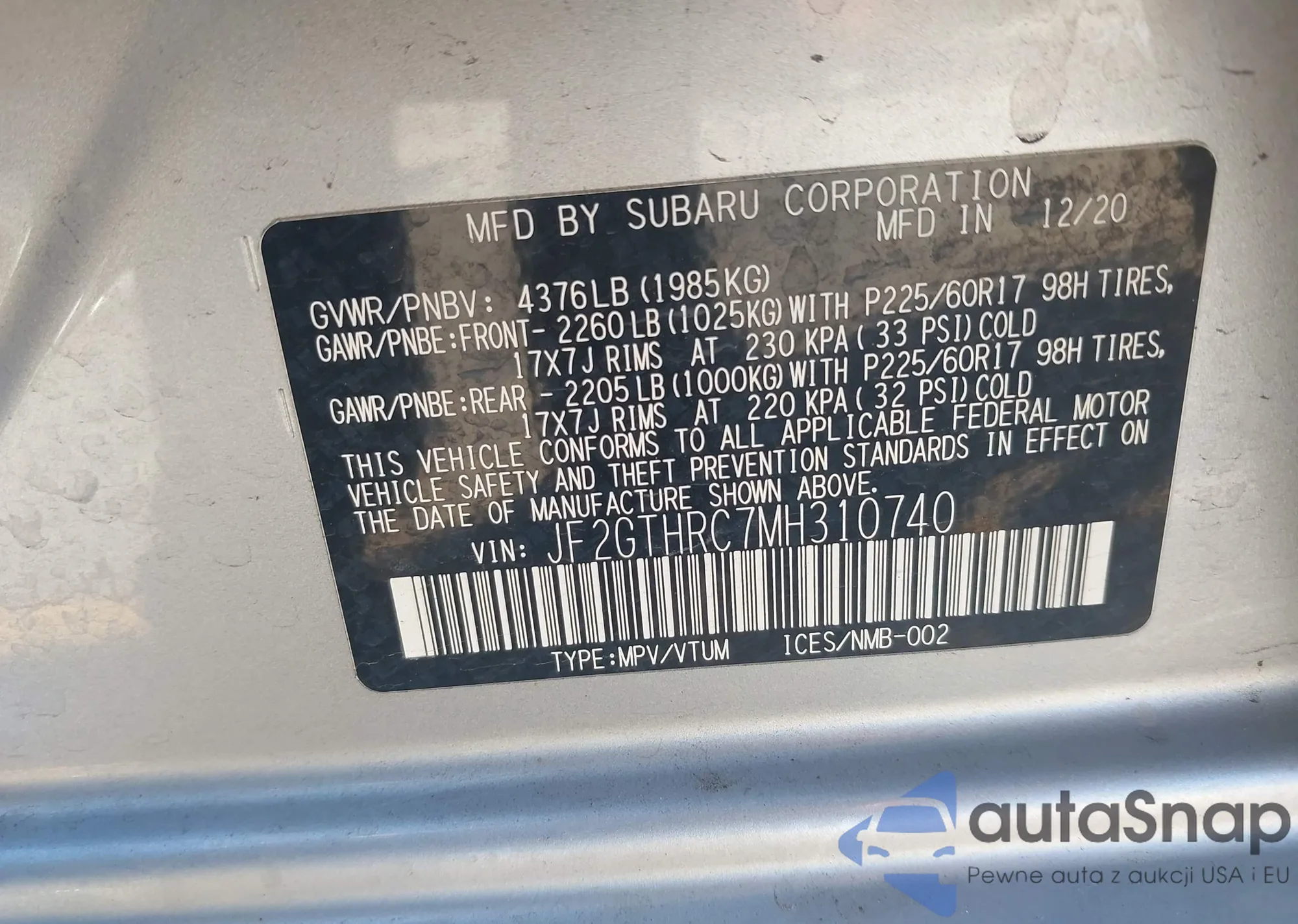 VIN: JF2GTHRC7MH310740
