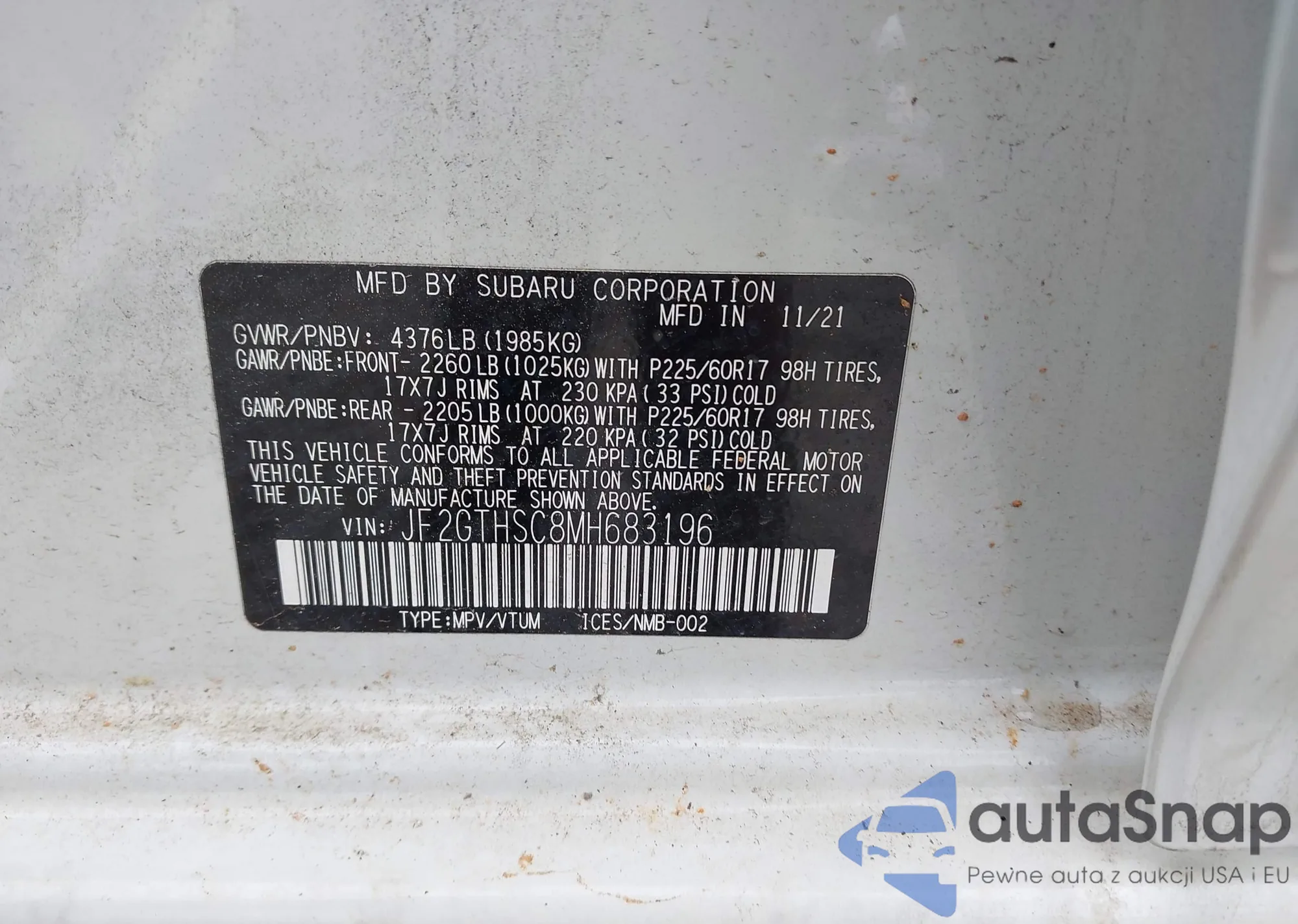 VIN: JF2GTHSC8MH683196