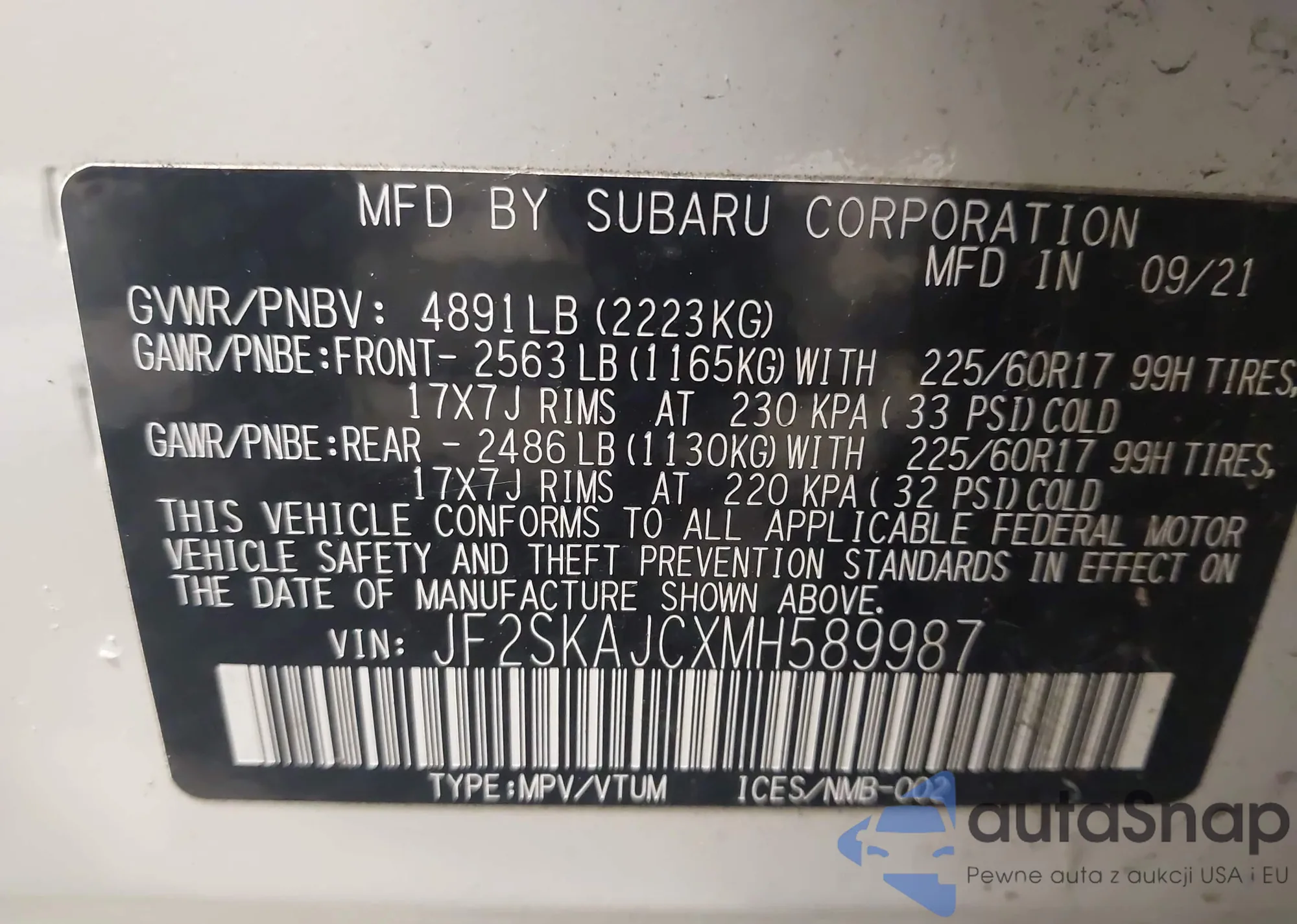 VIN: JF2SKAJCXMH589987
