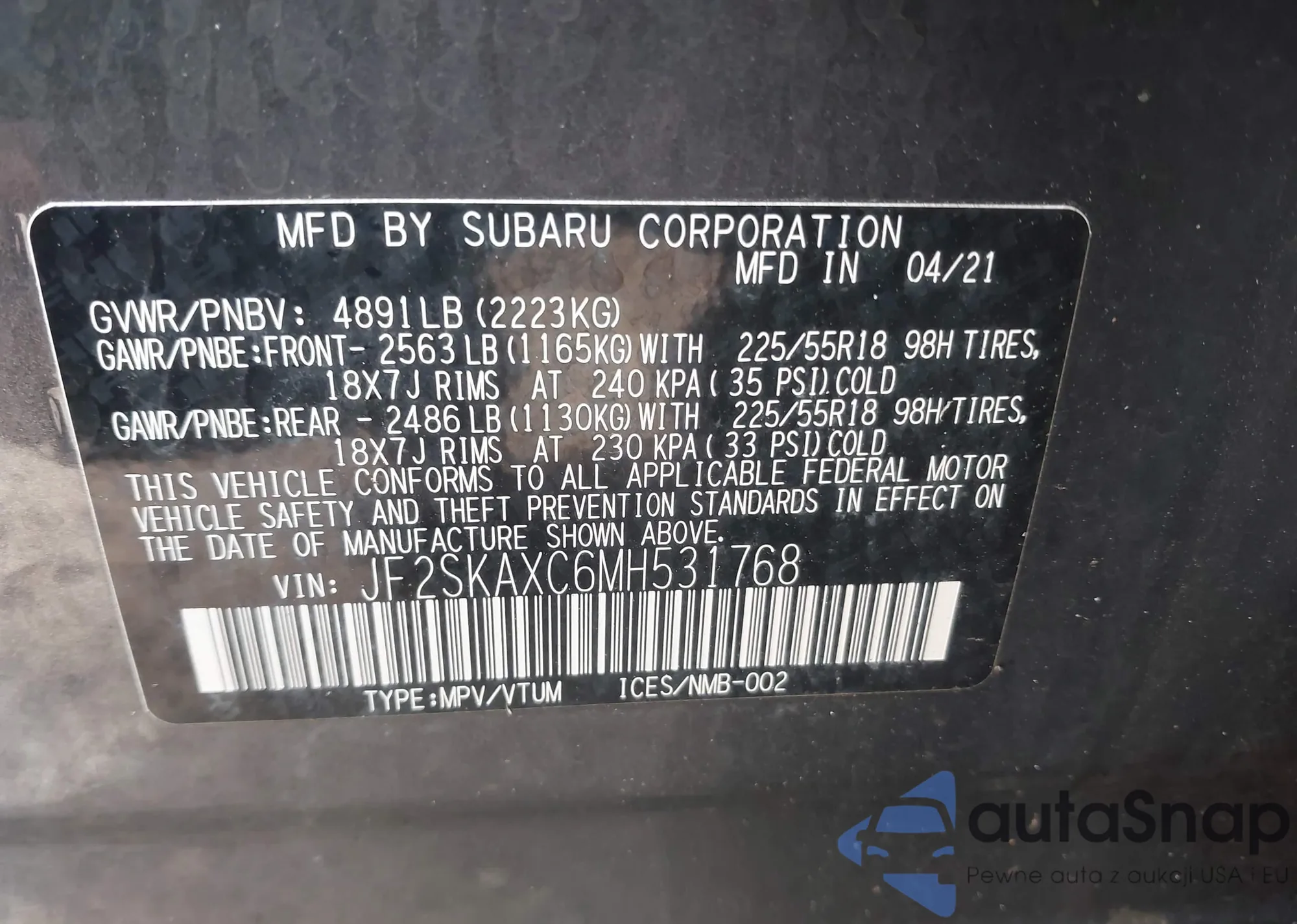 VIN: JF2SKAXC6MH531768