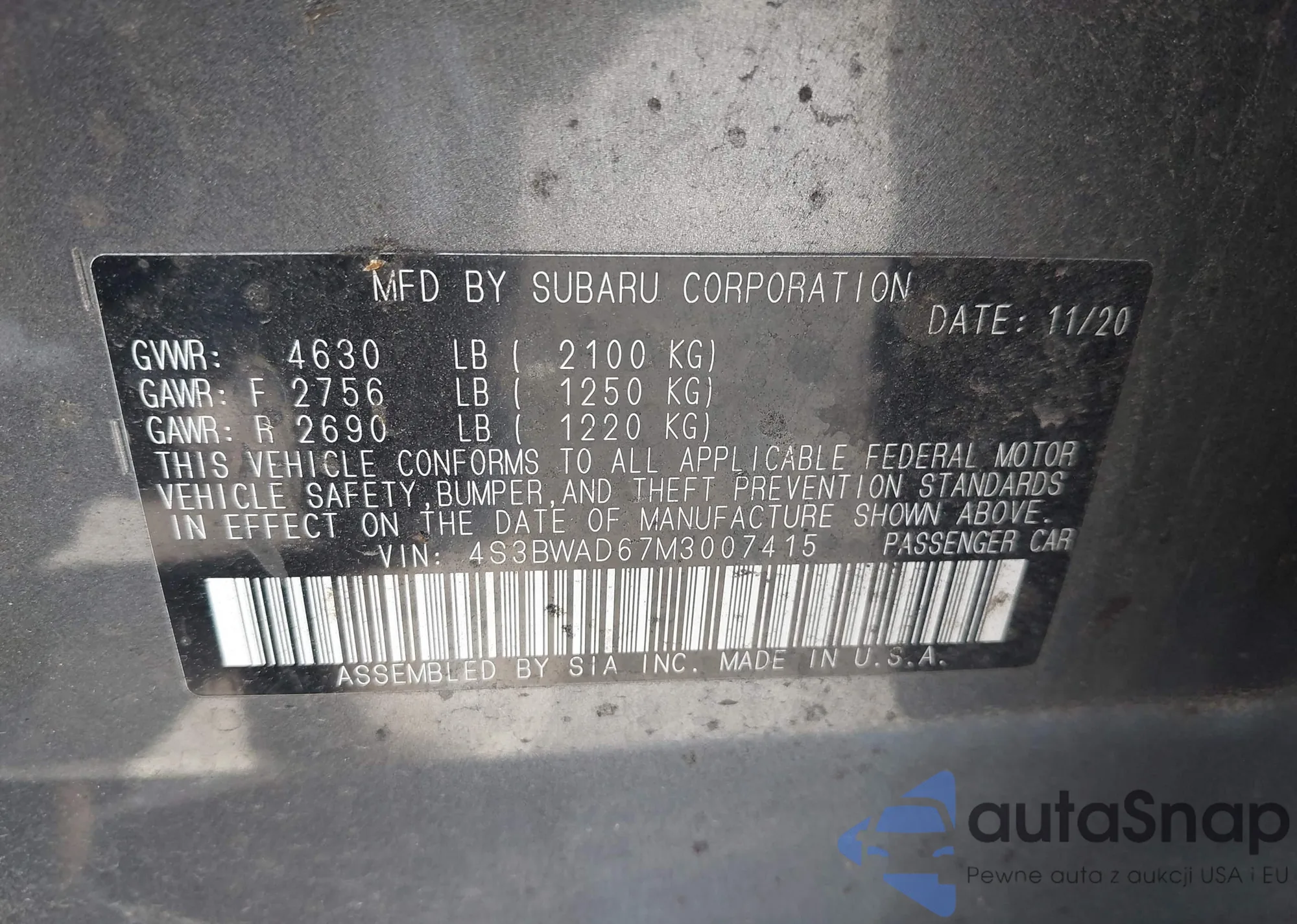 VIN: 4S3BWAD67M3007415