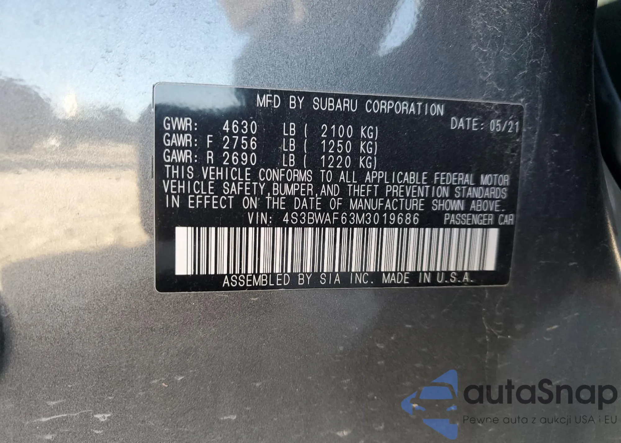 VIN: 4S3BWAF63M3019686