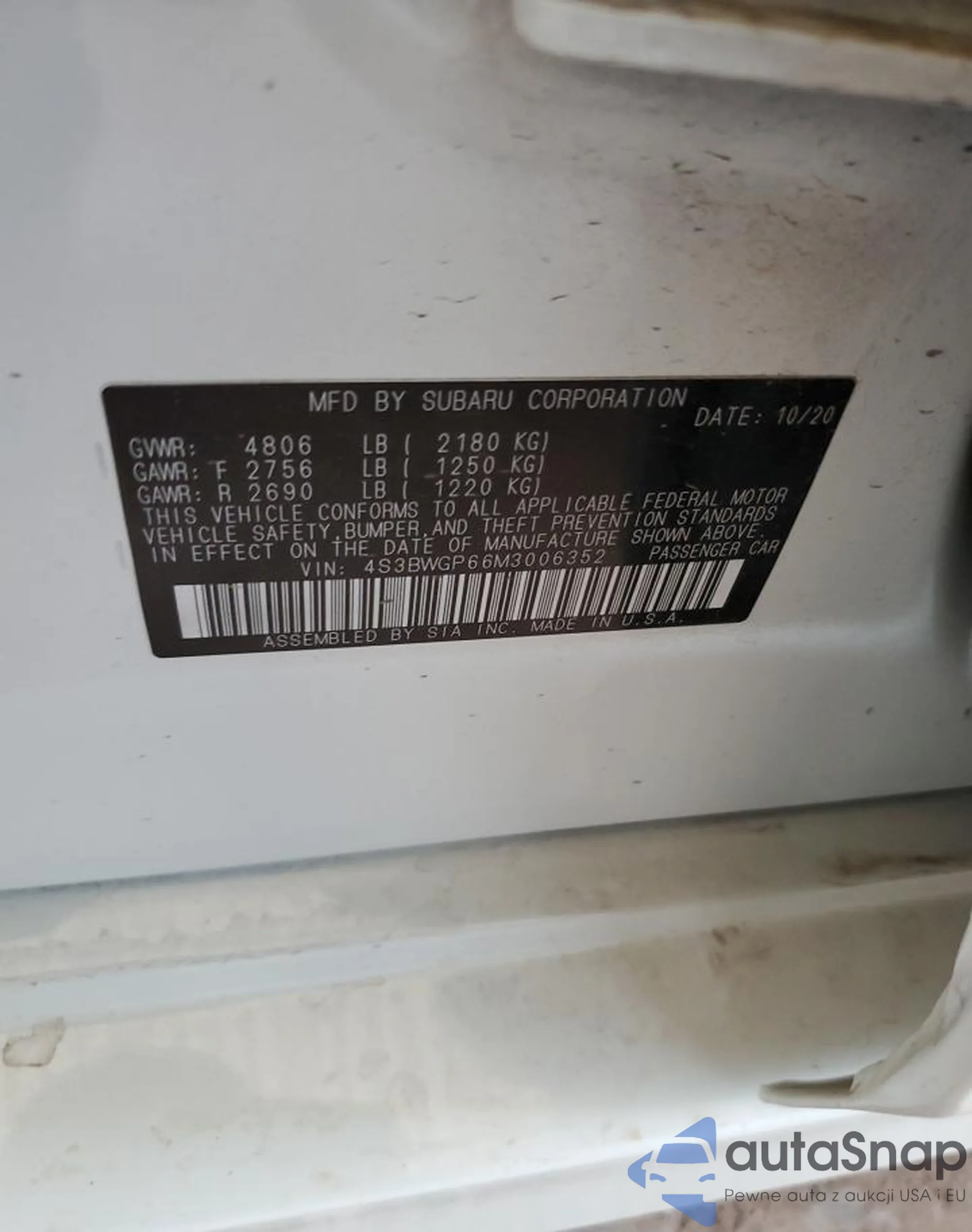 VIN: 4S3BWGP66M3006352