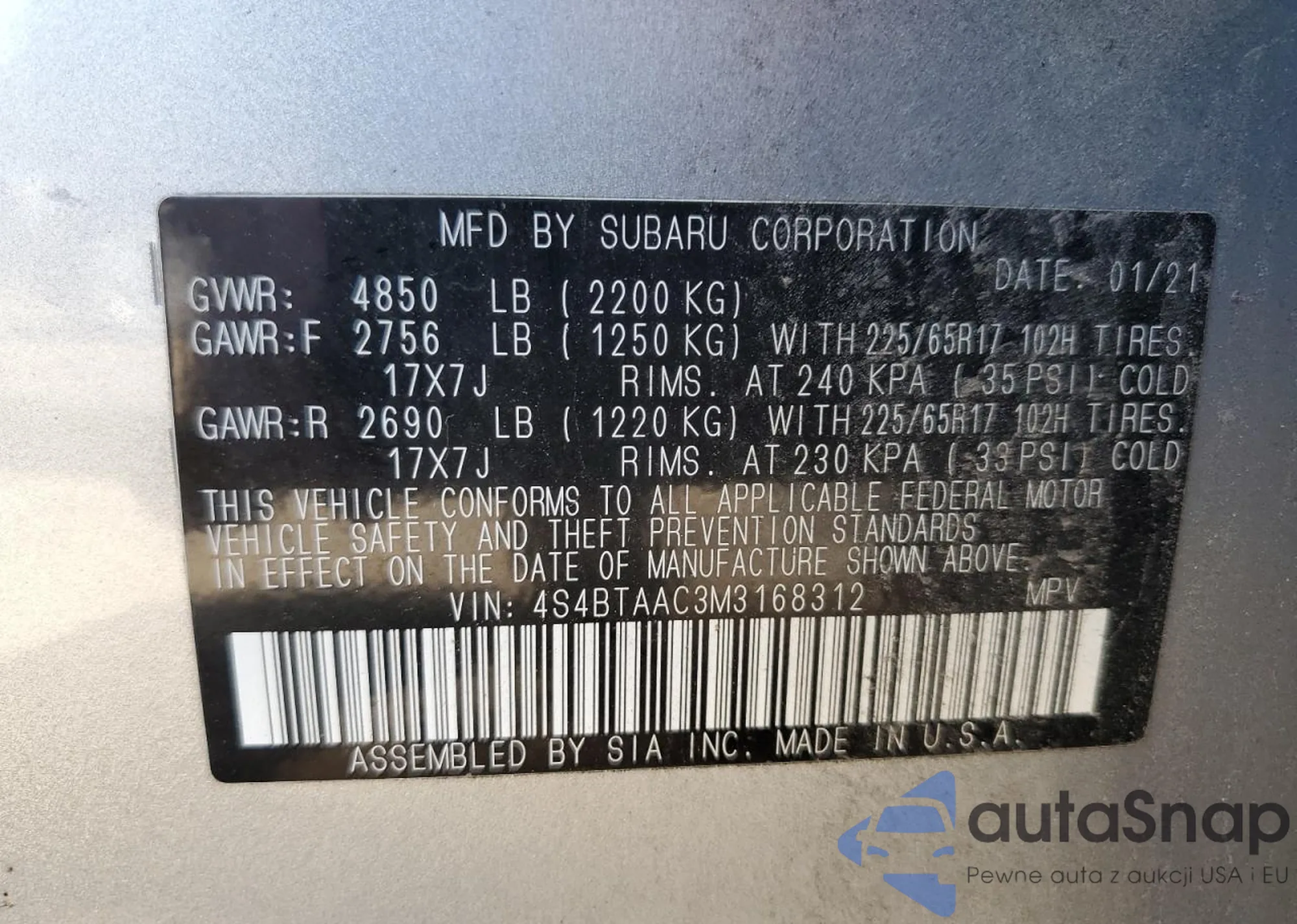 VIN: 4S4BTAAC3M3168312