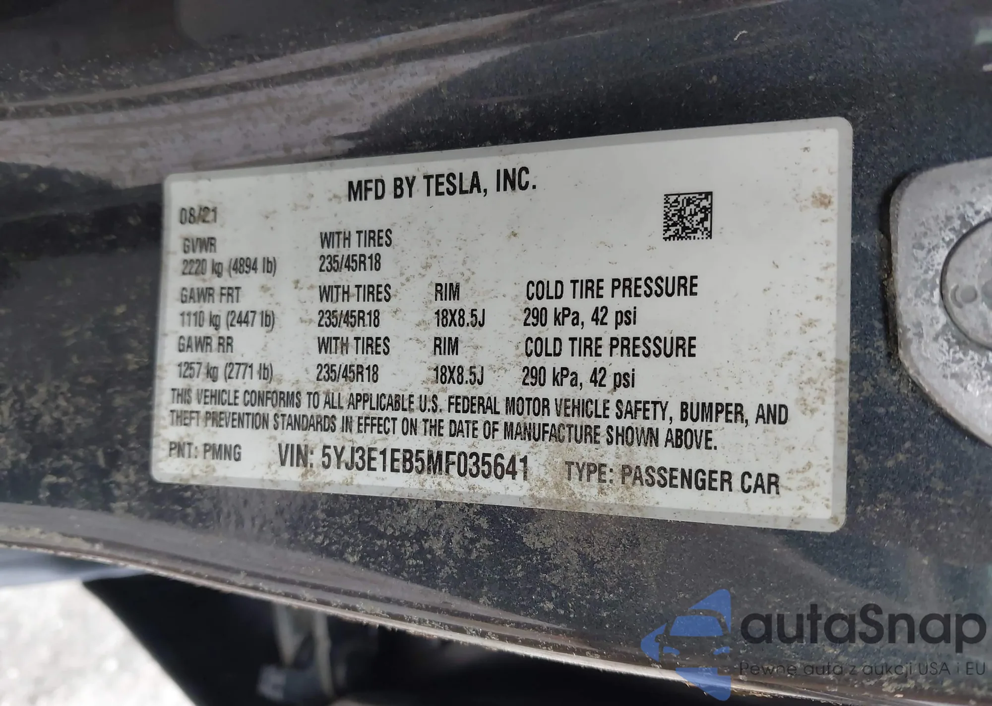 • VIN: 5YJ3E1EB5MF035641