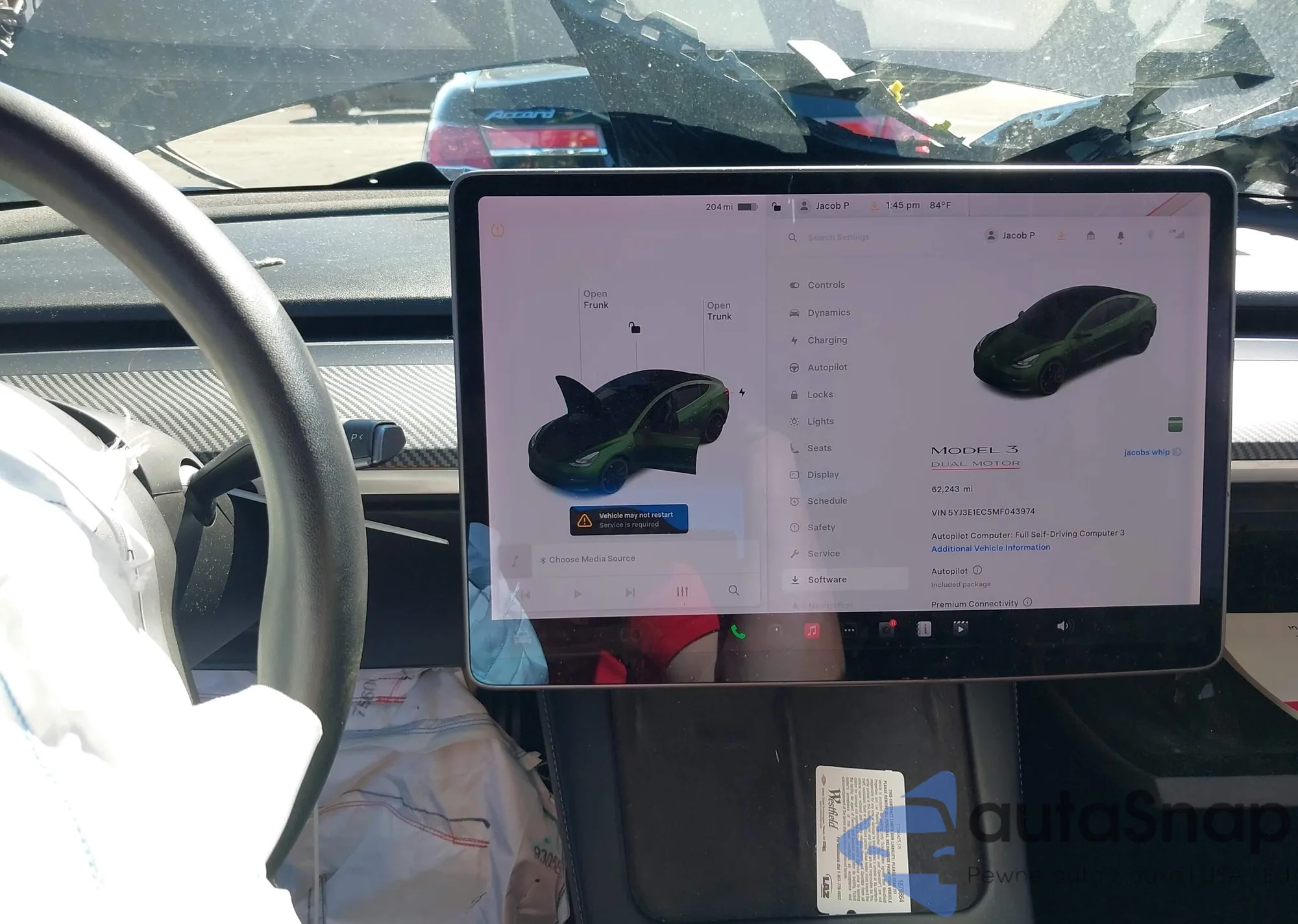 Samochód Tesla Model 3 2021 (VIN 5YJ3E1EC5MF043974) sprzedaje go niezweryfikowany sprzedawca. Zalecamy raport Carfax i potwierdzenie możliwości rejestracji pojazdu przed zakupem.
