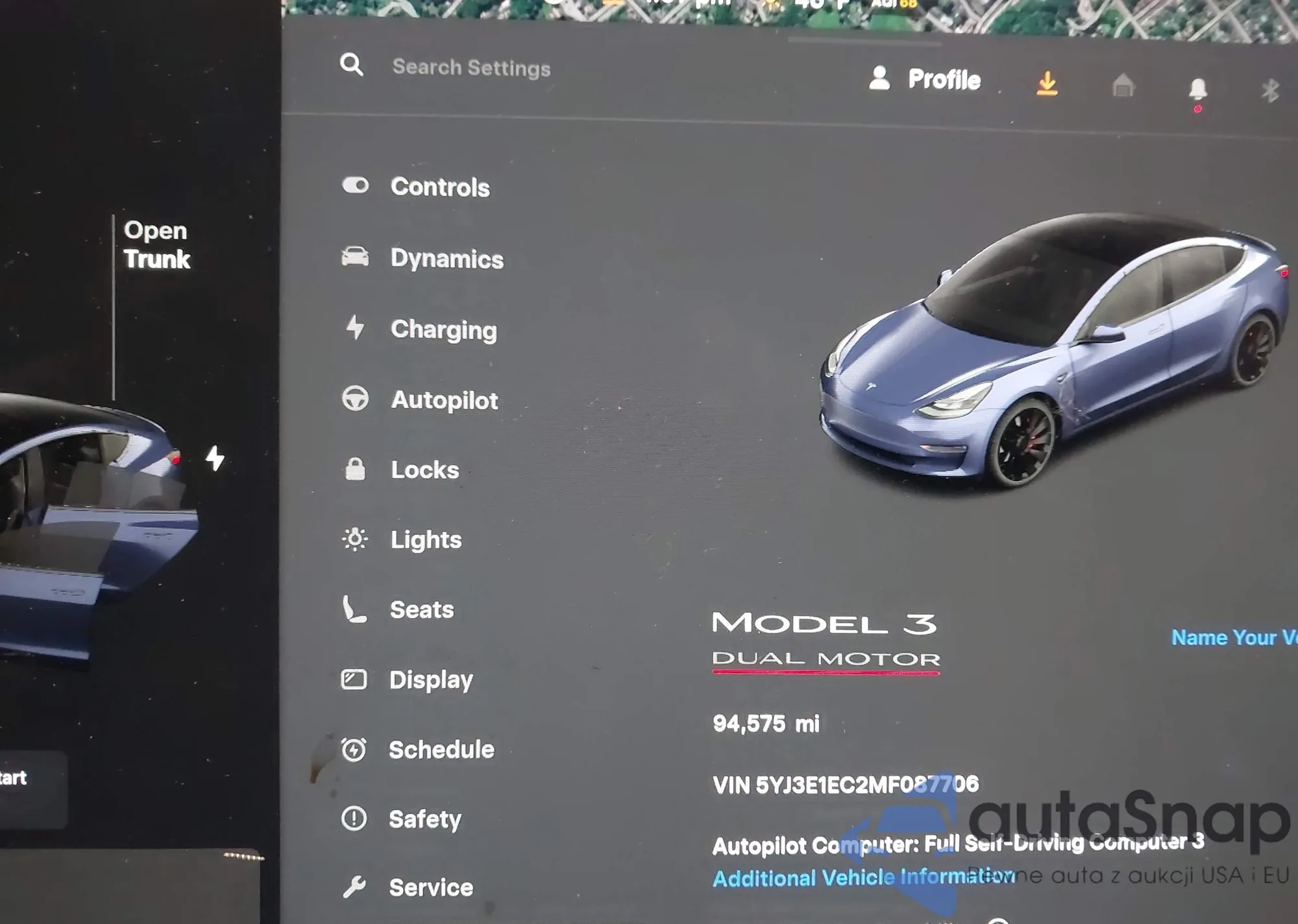 Tesla Model 3 2021 – Historia pojazdu (sprzedany na IAAI)