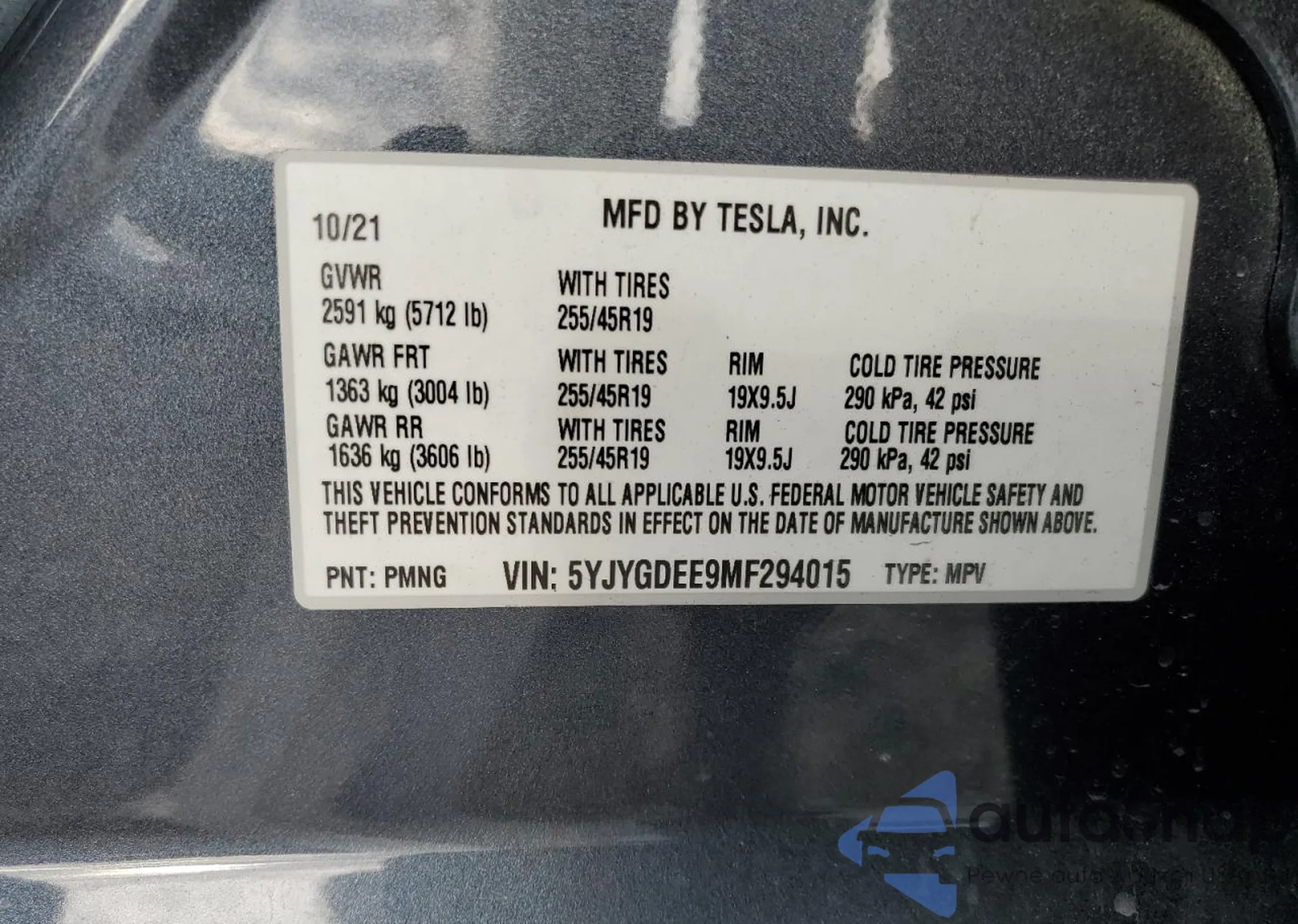 VIN: 5YJYGDEE9MF294015