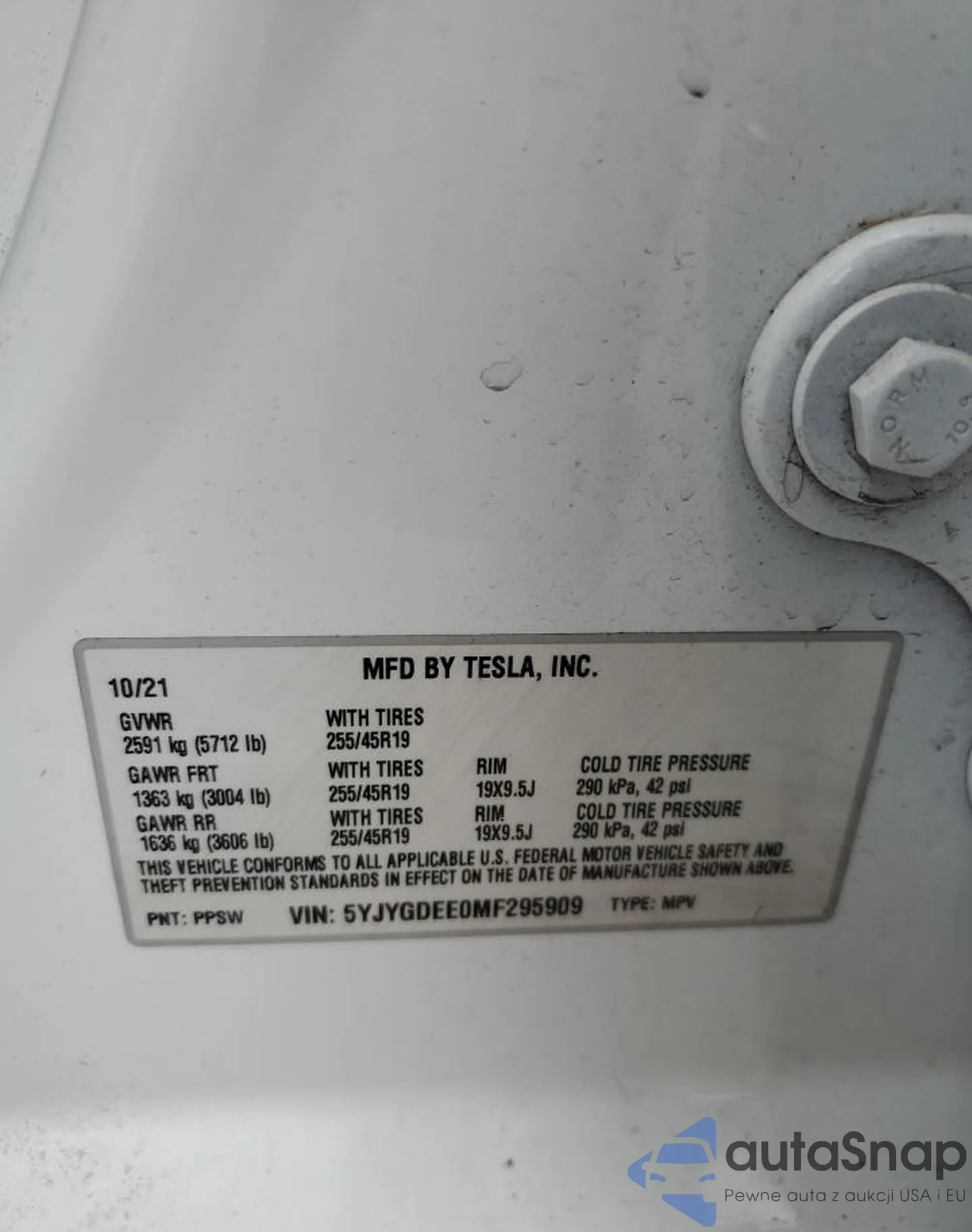 VIN: 5YJYGDEE0MF295909