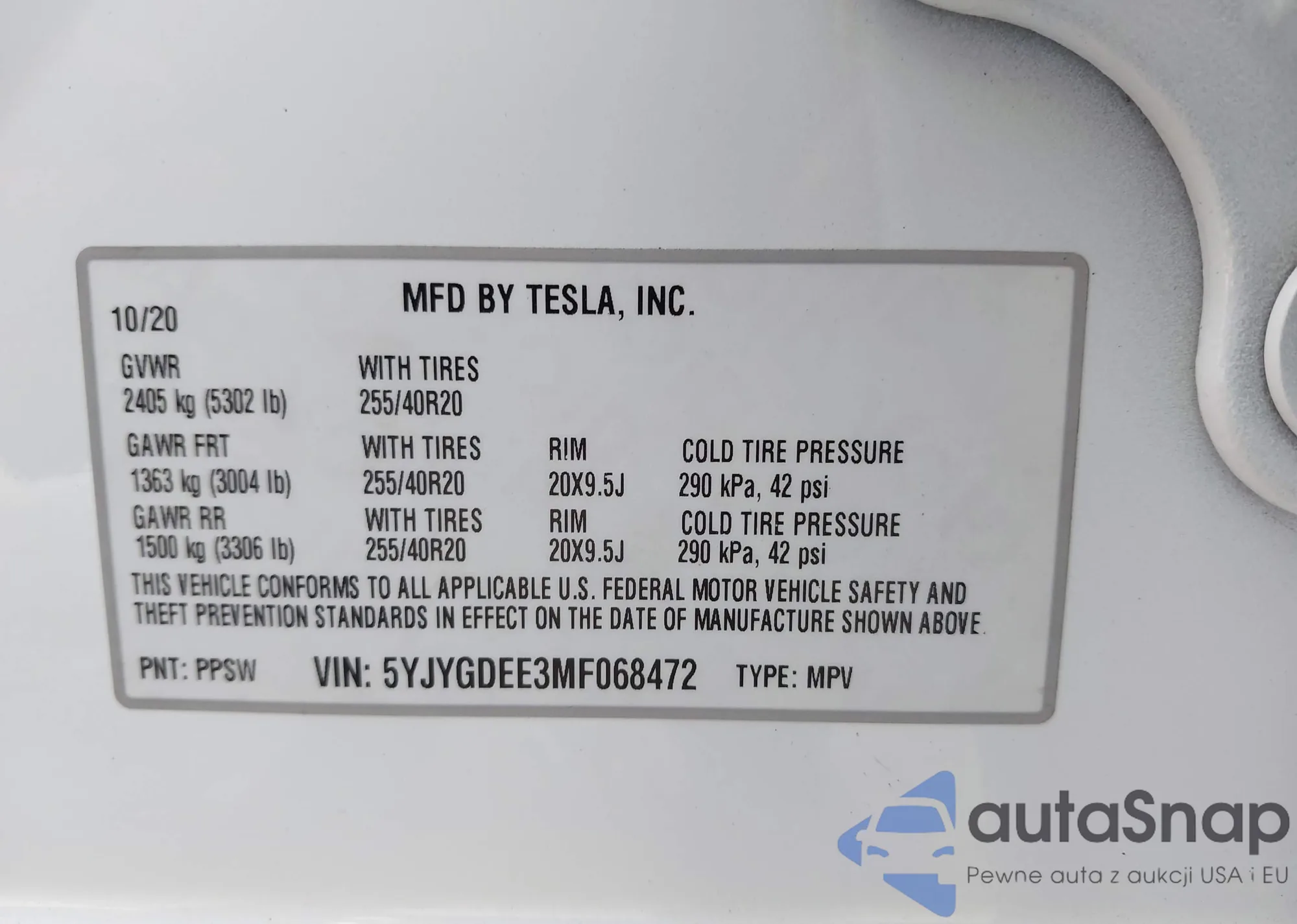 VIN: 5YJYGDEE3MF068472