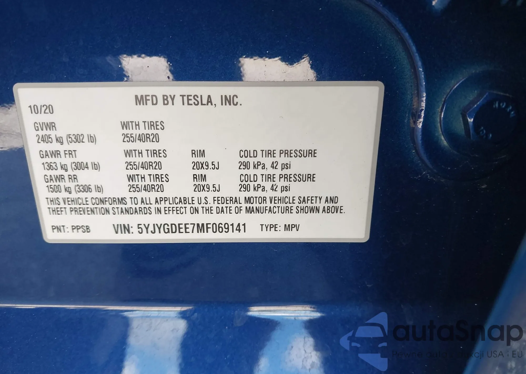 VIN: 5YJYGDEE7MF069141