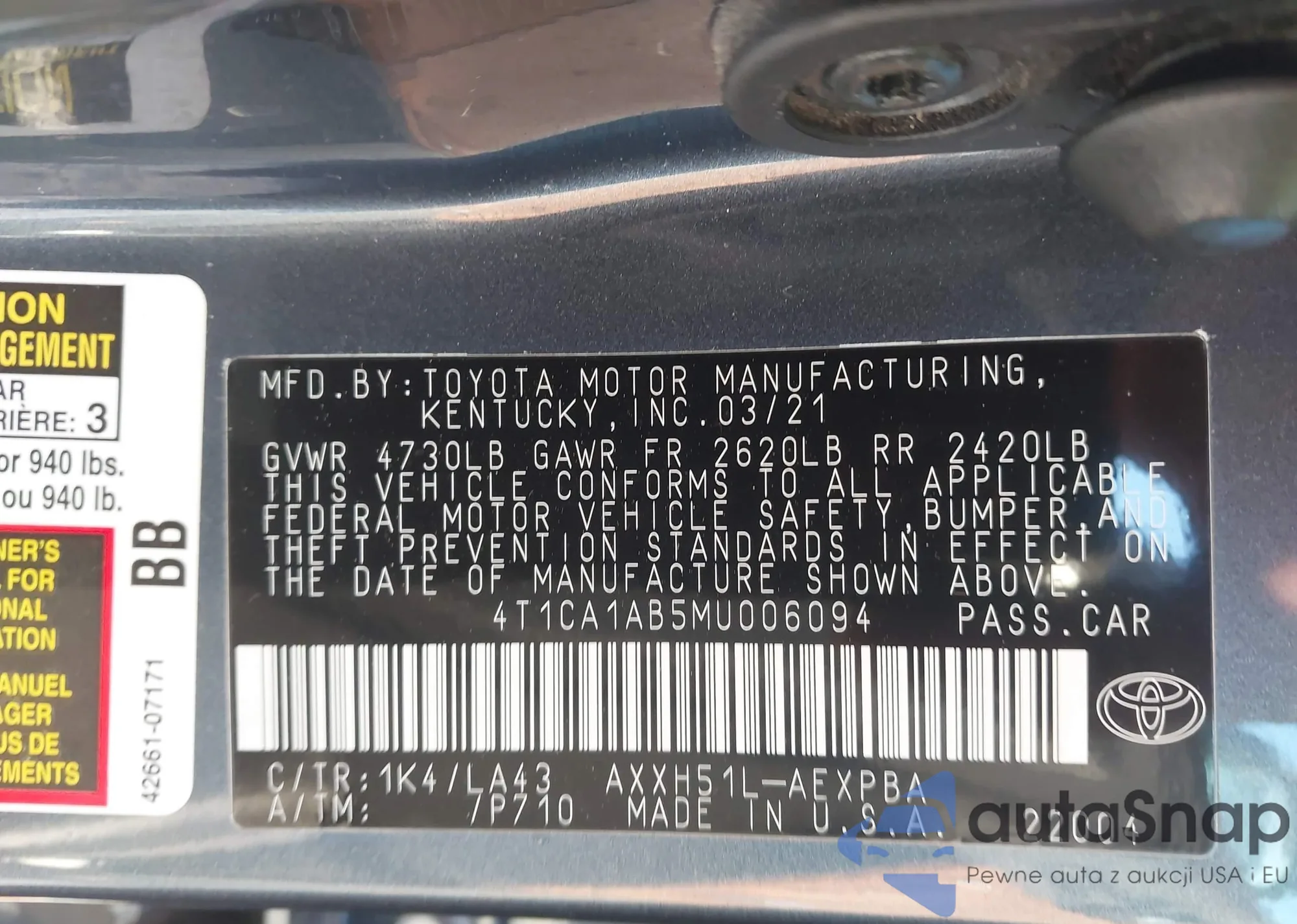 VIN: 4T1CA1AB5MU006094