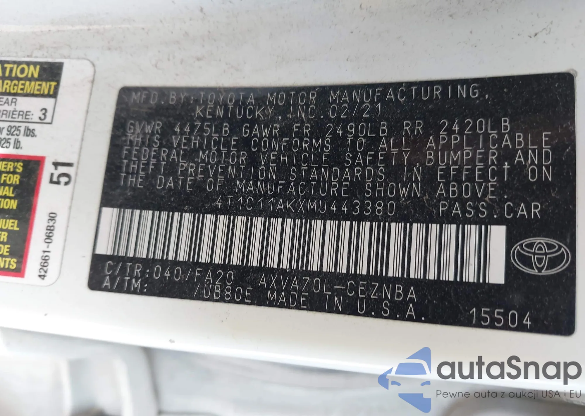 VIN: 4T1C11AKXMU443380