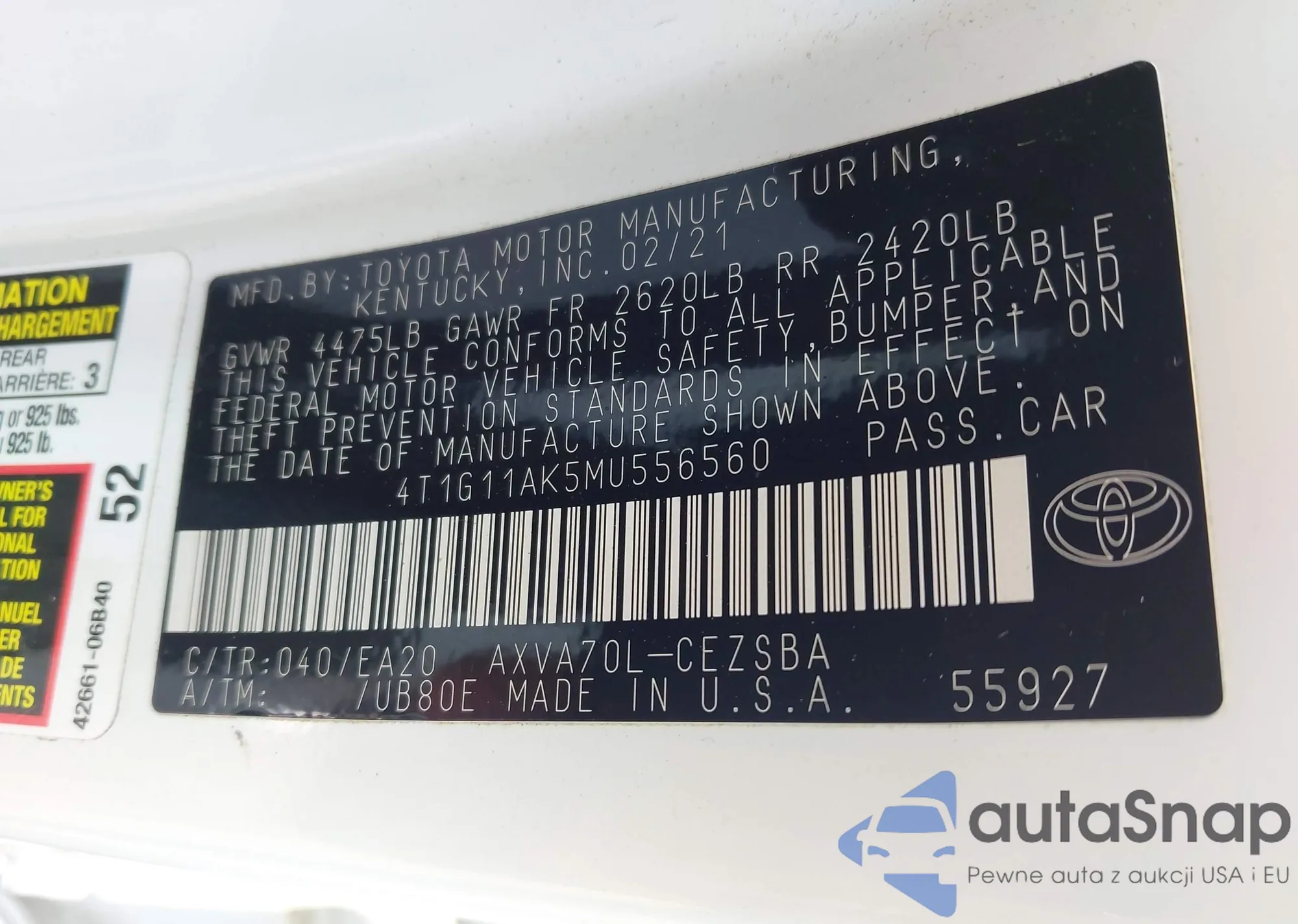 VIN: 4T1G11AK5MU556560