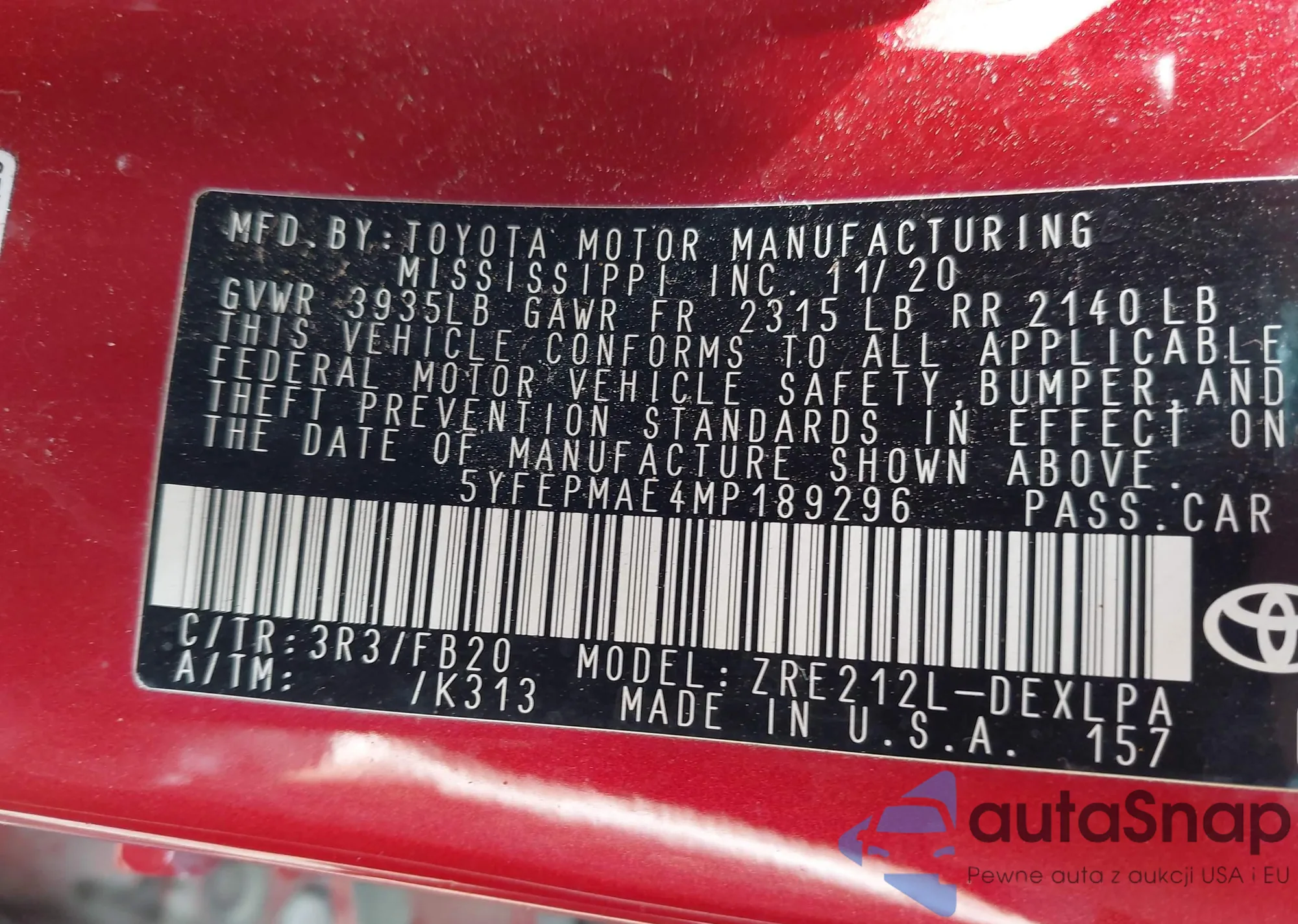 VIN: 5YFEPMAE4MP189296