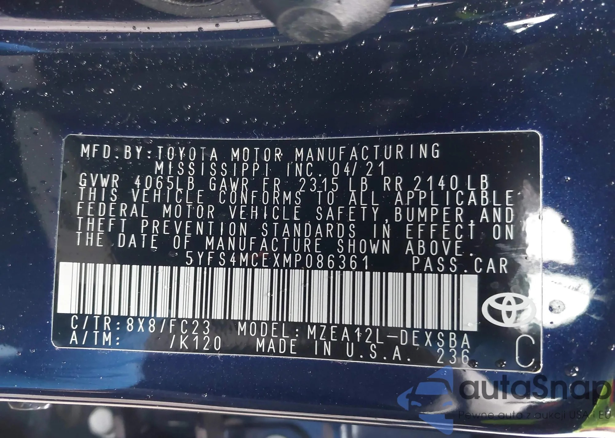 VIN: 5YFS4MCEXMP086361
