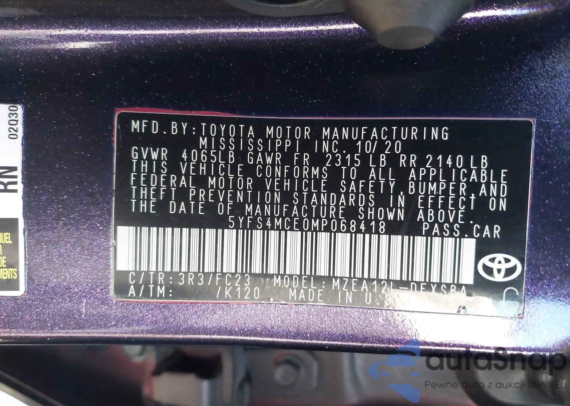 VIN: 5YFS4MCE0MP068418