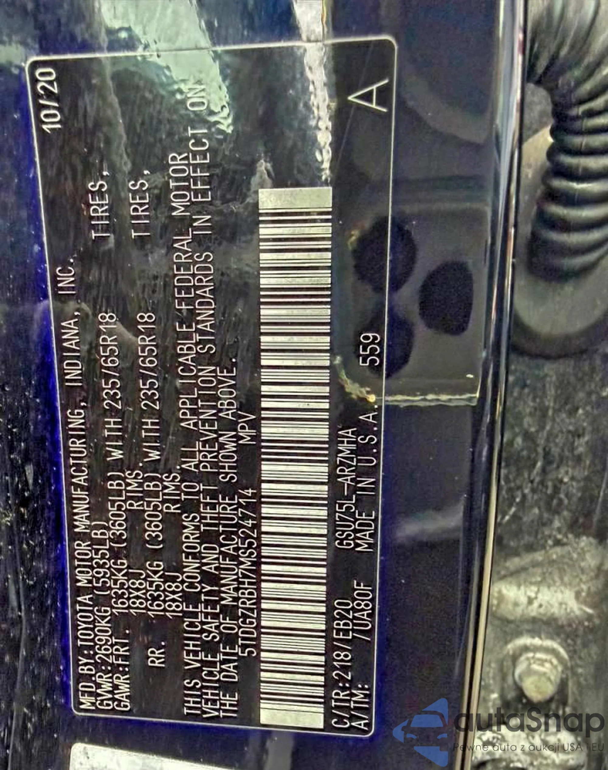 VIN: 5TDGZRBH7MS524714