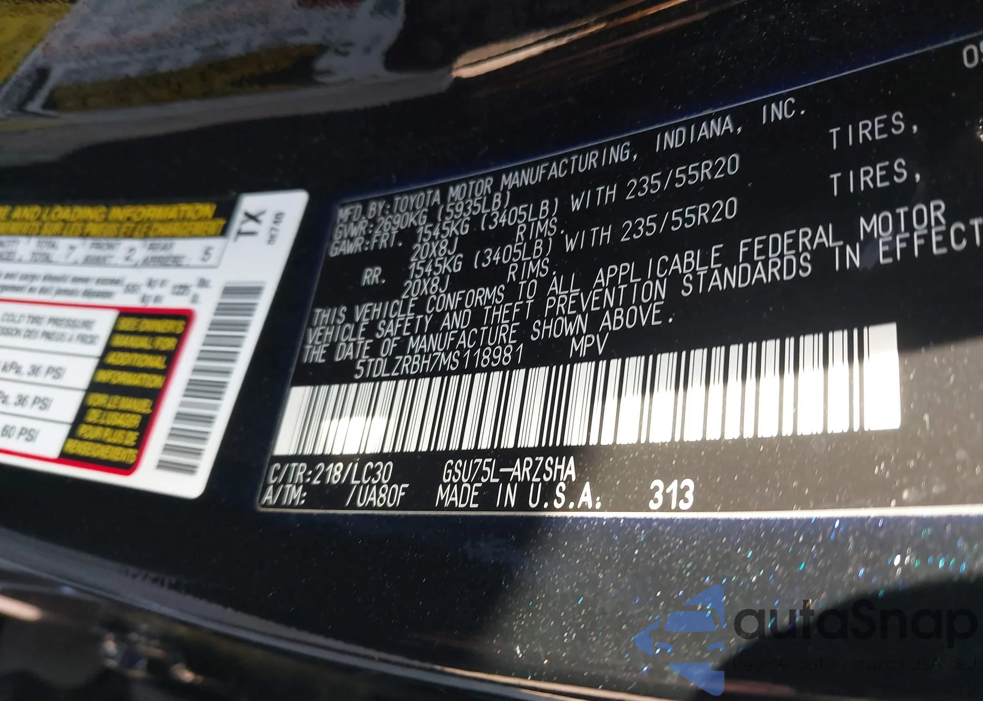 VIN: 5TDLZRBH7MS118981
