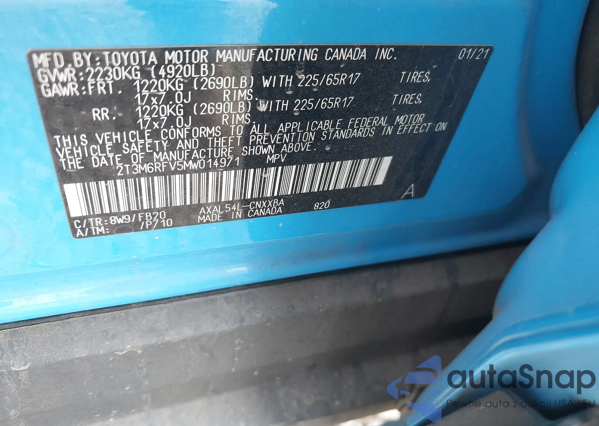 VIN: 2T3M6RFV5MW014971
