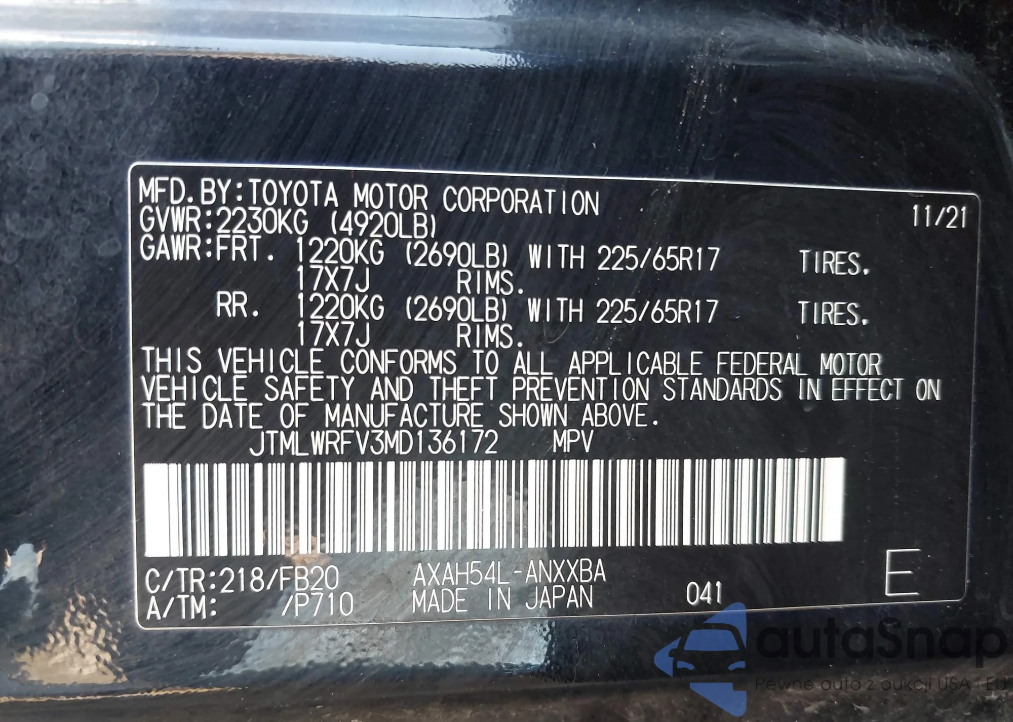 VIN: JTMLWRFV3MD136172