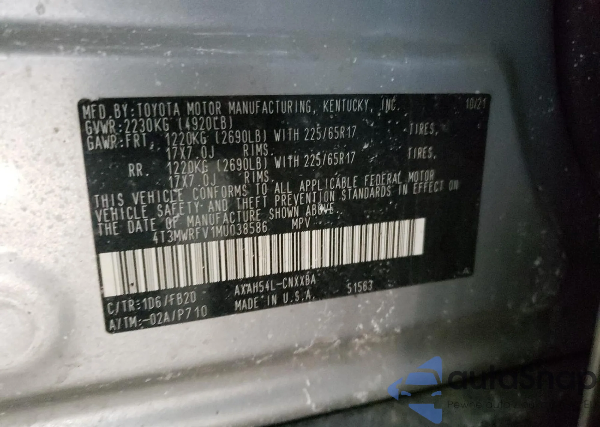 VIN: 4T3MWRFV1MU038586