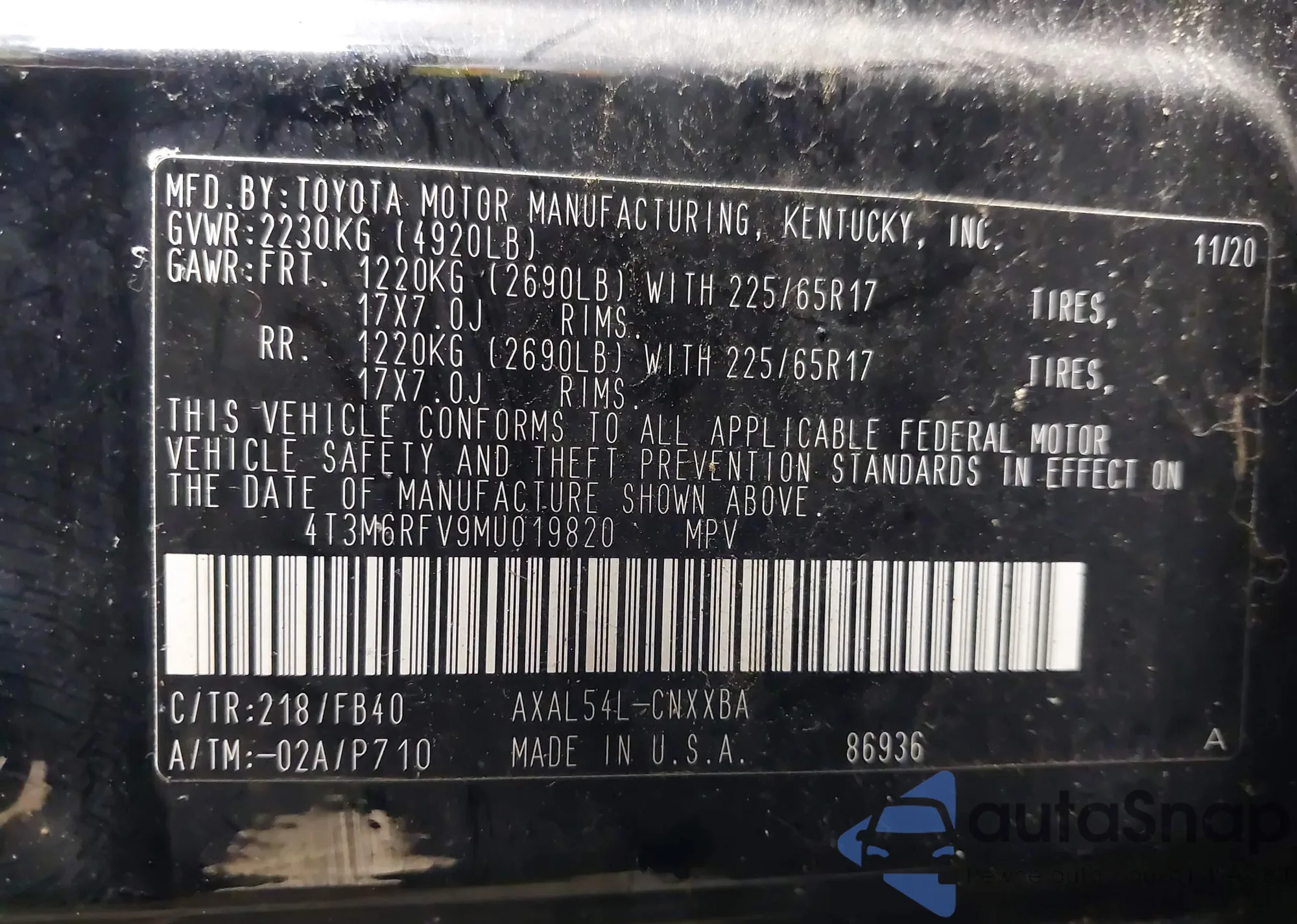 Samochód Toyota RAV 4 2021 (VIN 4T3M6RFV9MU019820) nie był wcześniej licytowany. Dokumenty są czyste, przebieg odpowiada lub jest niższy niż średnia rynku. Sprzedaje go firma ubezpieczeniowa – polecamy zakup. Dostawa do portu zajmie ok. 6–8 tygodni.