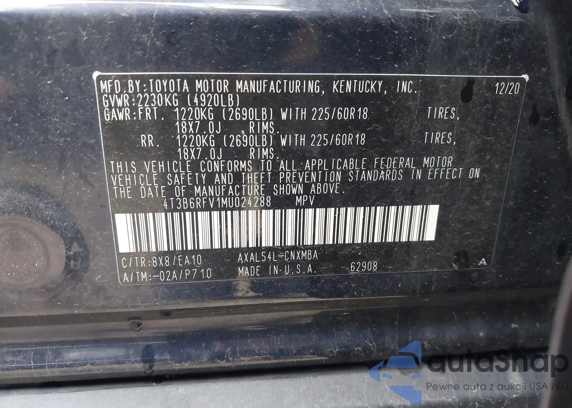 VIN: 4T3B6RFV1MU024288