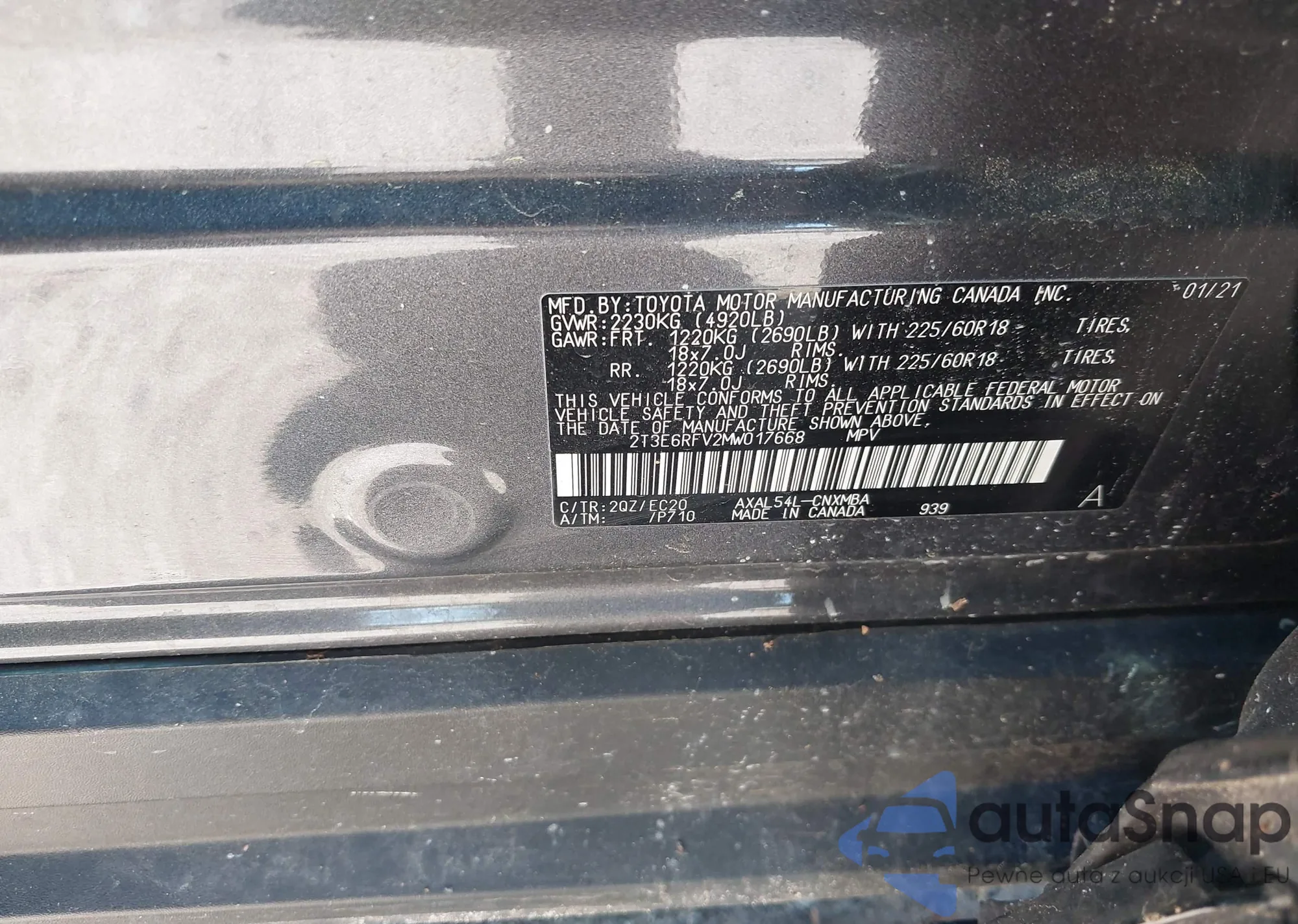 VIN: 2T3E6RFV2MW017668