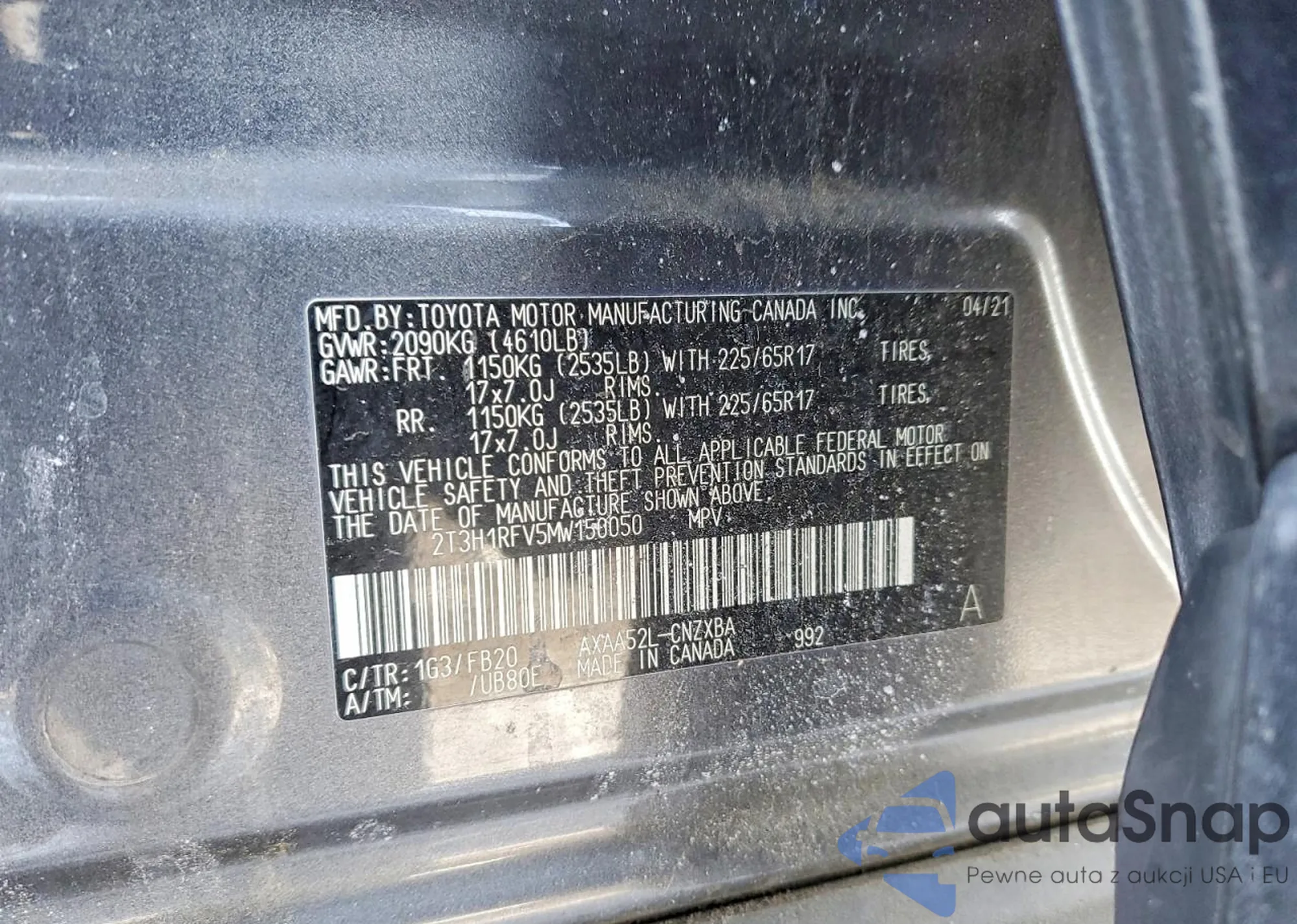 Samochód Toyota RAV 4 2021 (VIN 2T3H1RFV5MW150050) sprzedaje go niezweryfikowany sprzedawca. Zalecamy raport Carfax i potwierdzenie możliwości rejestracji pojazdu przed zakupem.