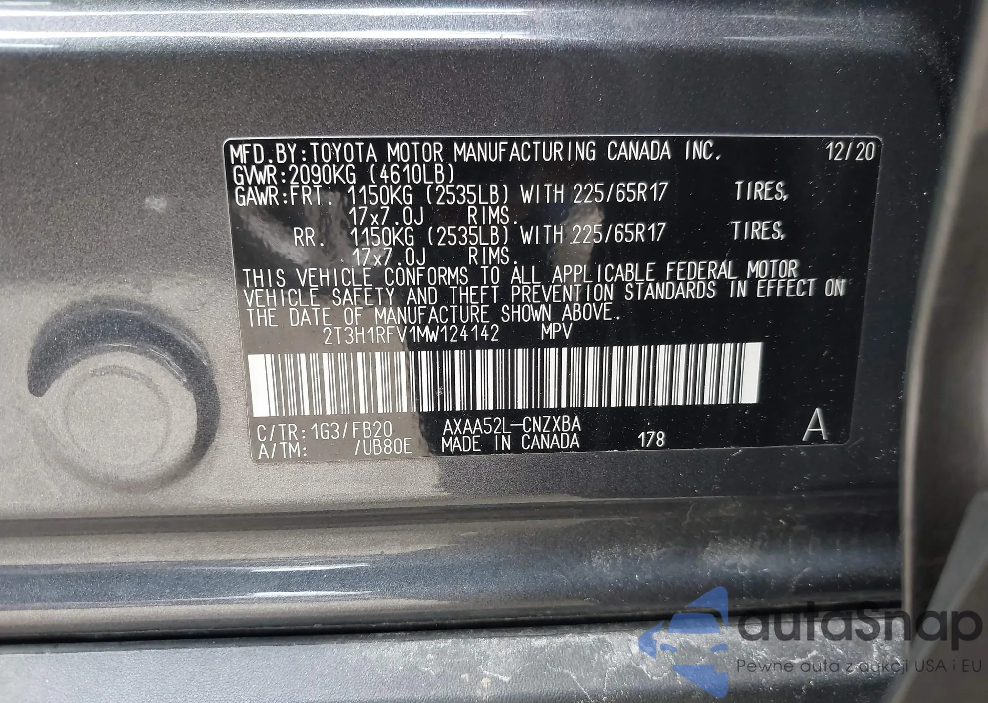 VIN: 2T3H1RFV1MW124142