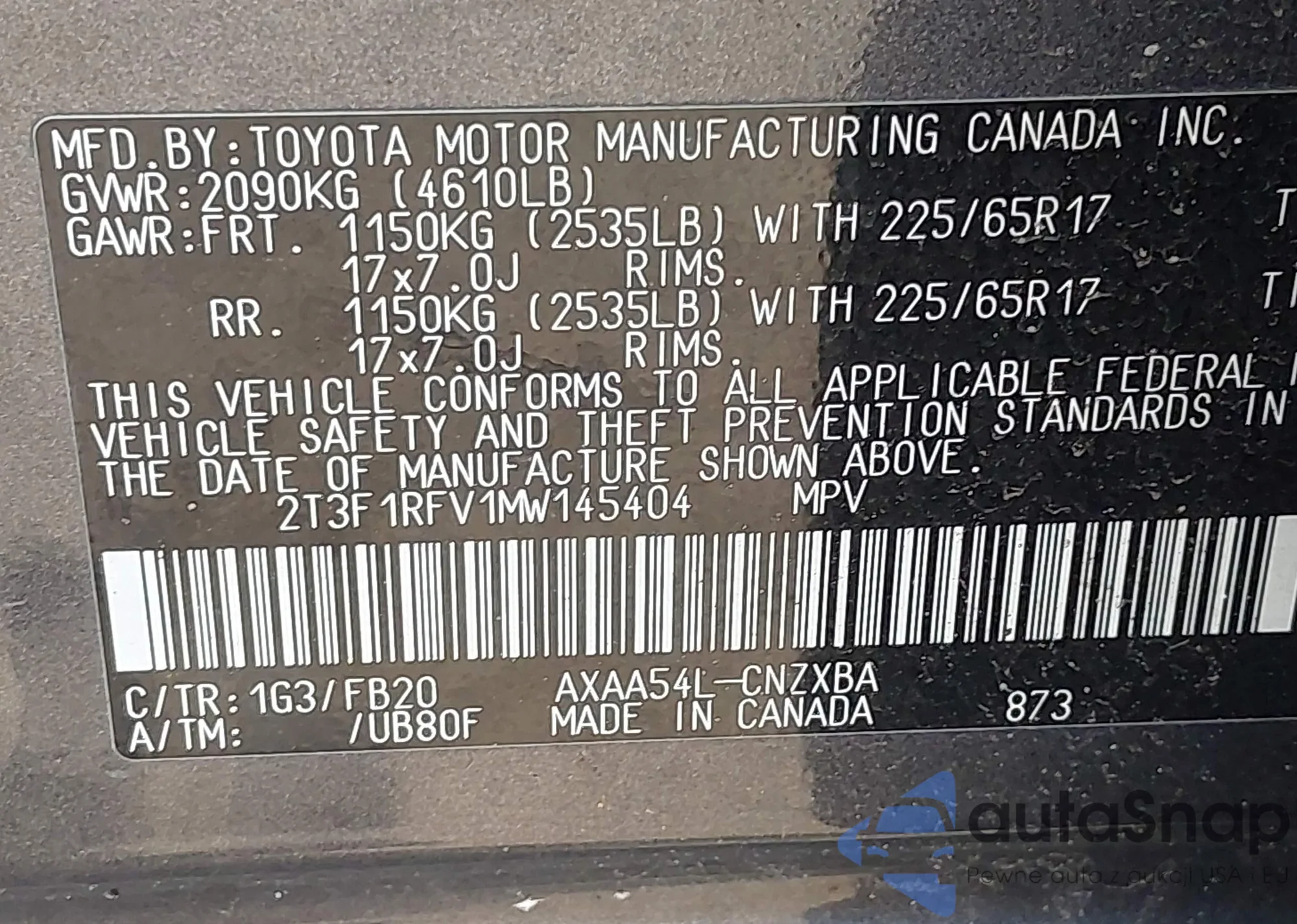 VIN: 2T3F1RFV1MW145404