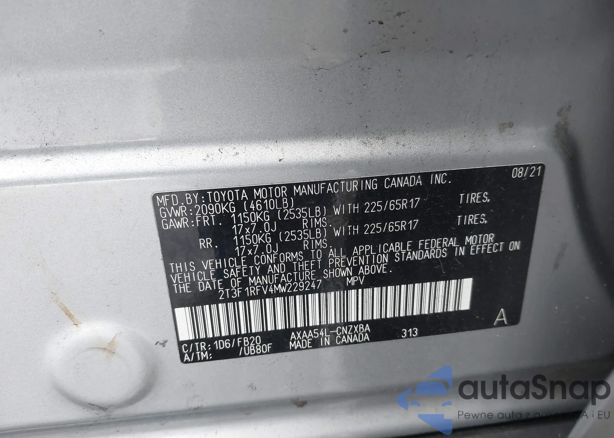 VIN: 2T3F1RFV4MW229247