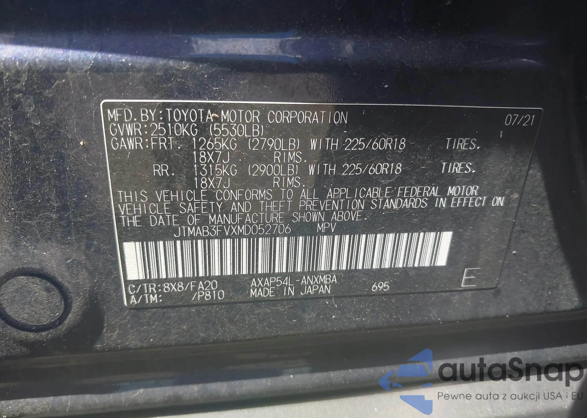 VIN: JTMAB3FVXMD052706