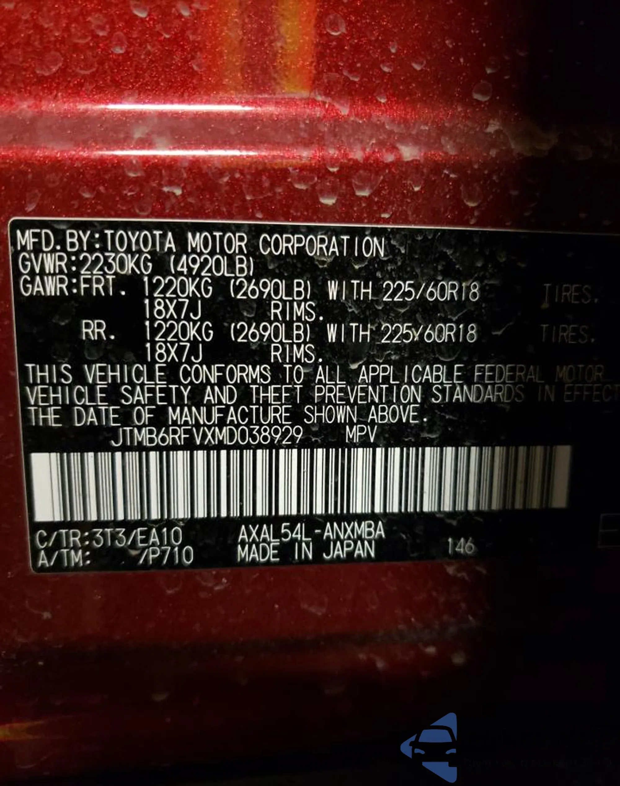 VIN: JTMB6RFVXMD038929