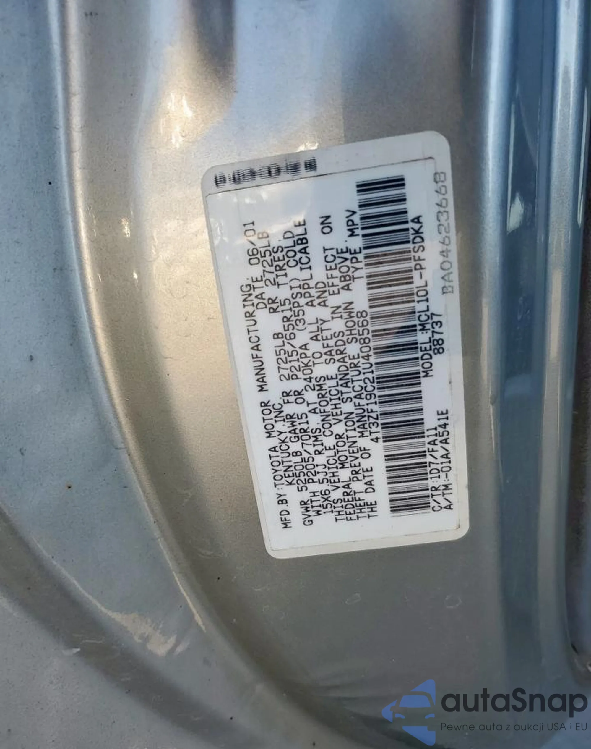 VIN: 4T3ZF19C21U408568