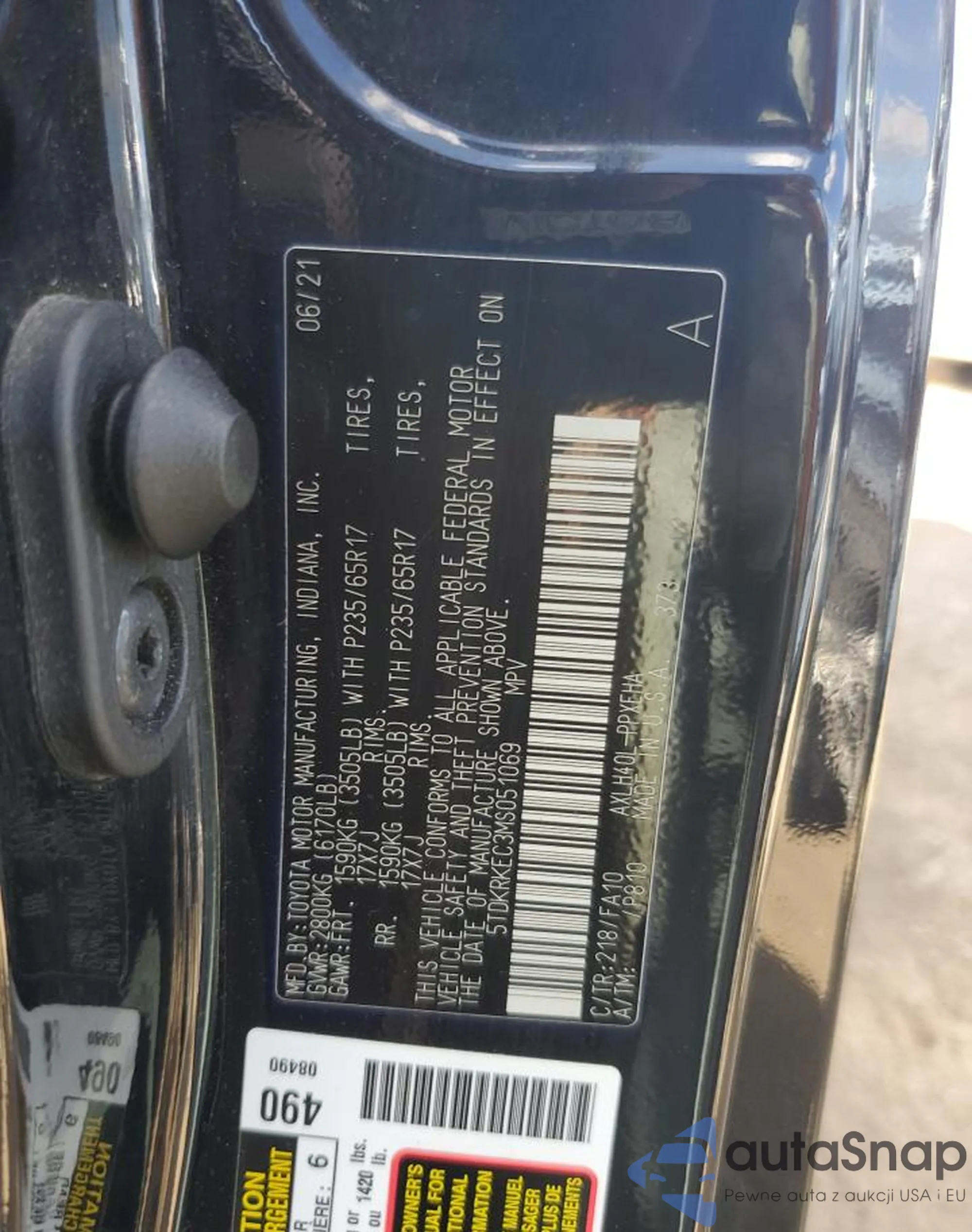 Samochód Toyota Sienna 2021 (VIN 5TDKRKEC3MS051069) sprzedaje go niezweryfikowany sprzedawca. Zalecamy raport Carfax i potwierdzenie możliwości rejestracji pojazdu przed zakupem.